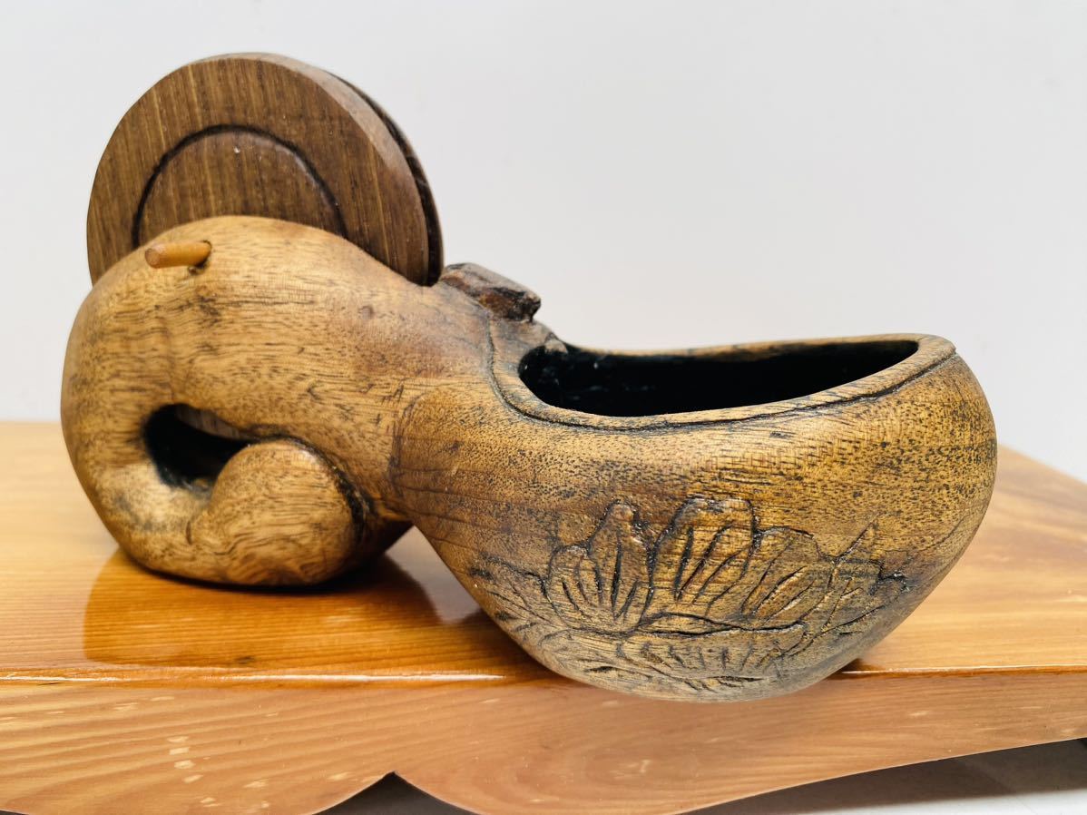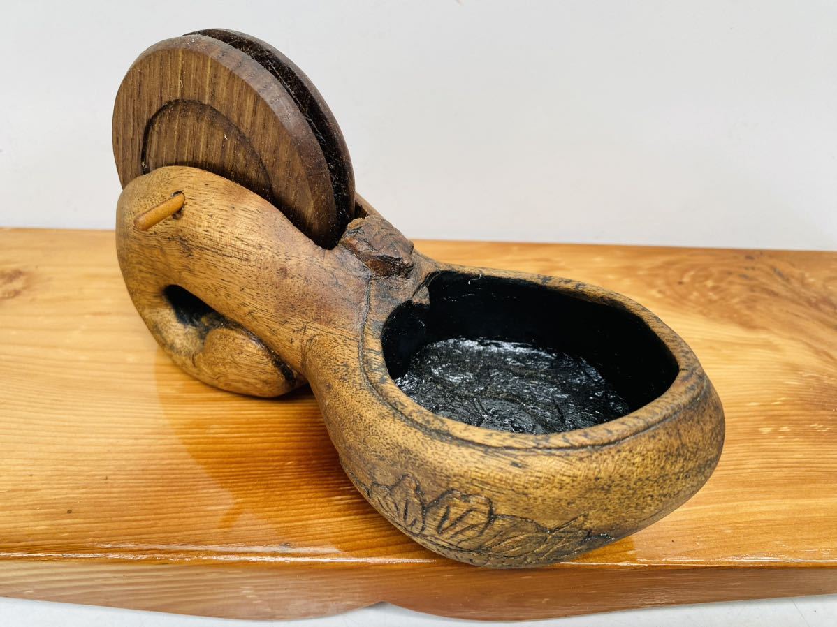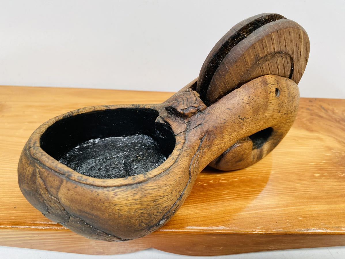 二体の獅子、植物の浮き彫りと小さな小亀が可愛い小ぶりの墨壺
