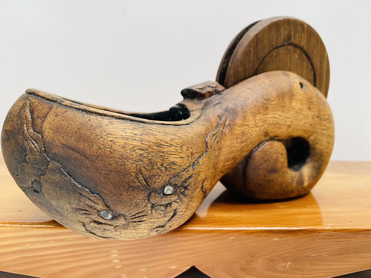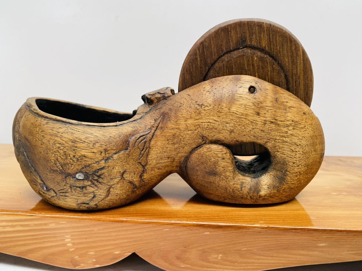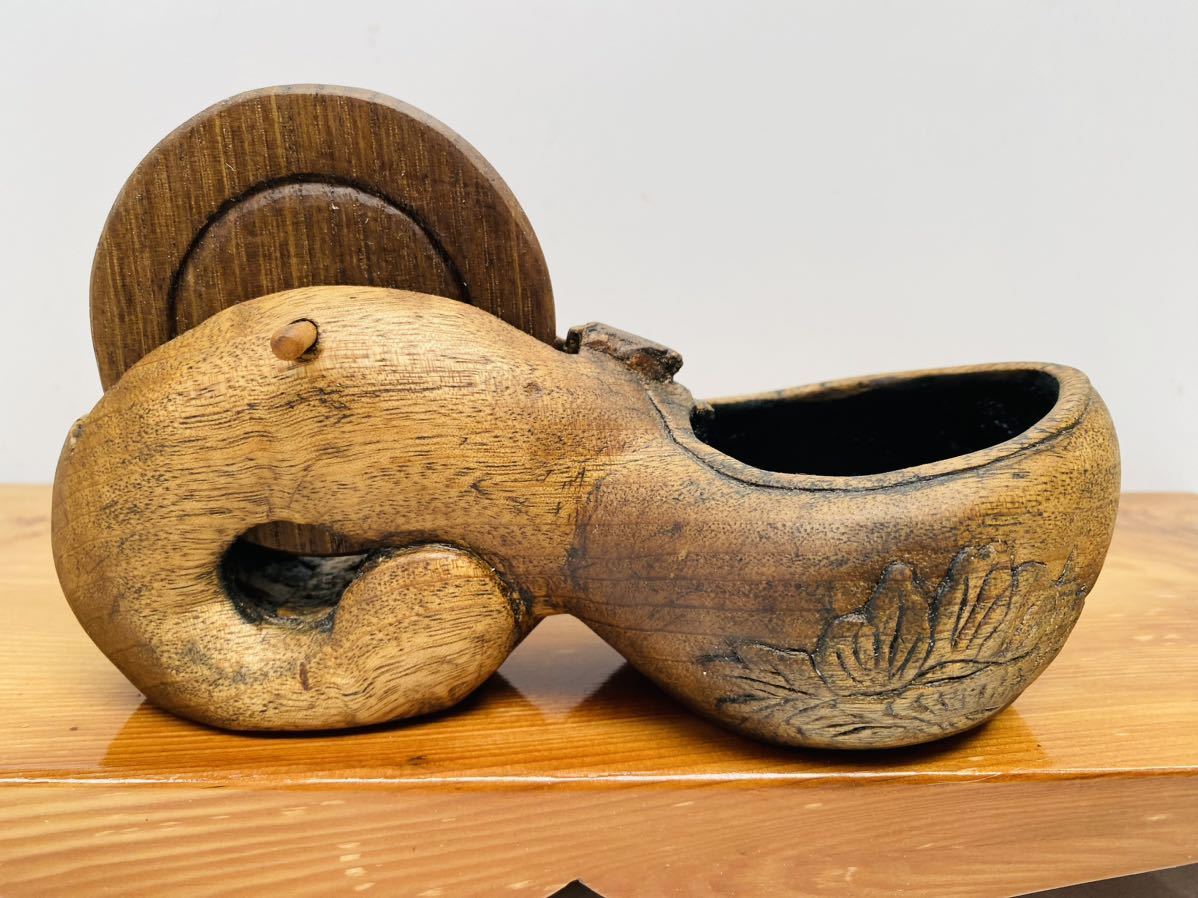 二体の獅子、植物の浮き彫りと小さな小亀が可愛い小ぶりの墨壺