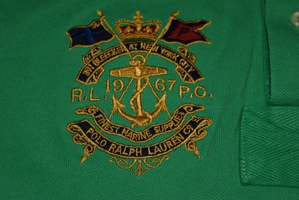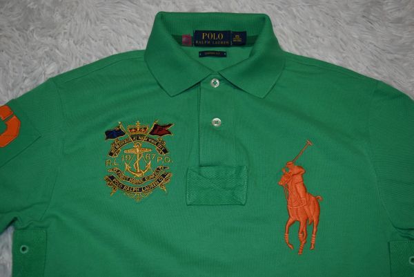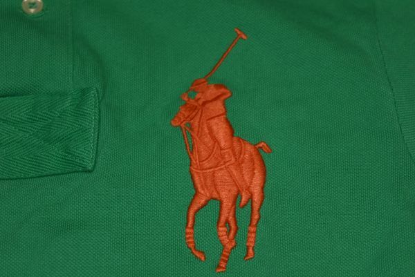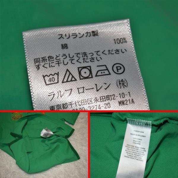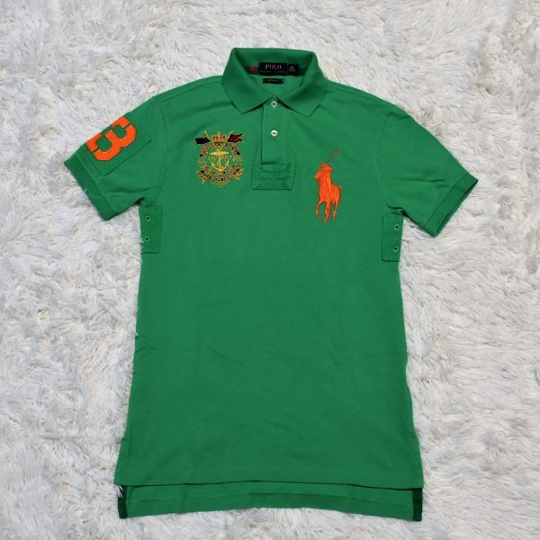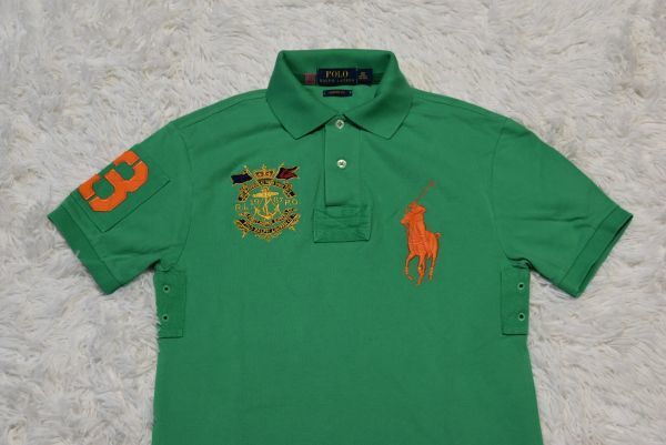★⑥★POLO★ラルフローレン★ラルフローレン(株)★ グリーン色★デカポロ刺繍付きの半袖ポロシャツ XS 165/88A