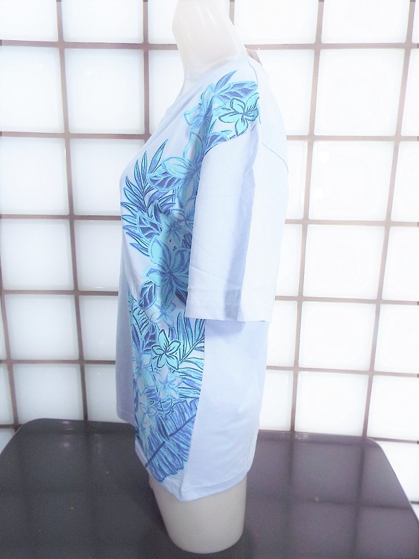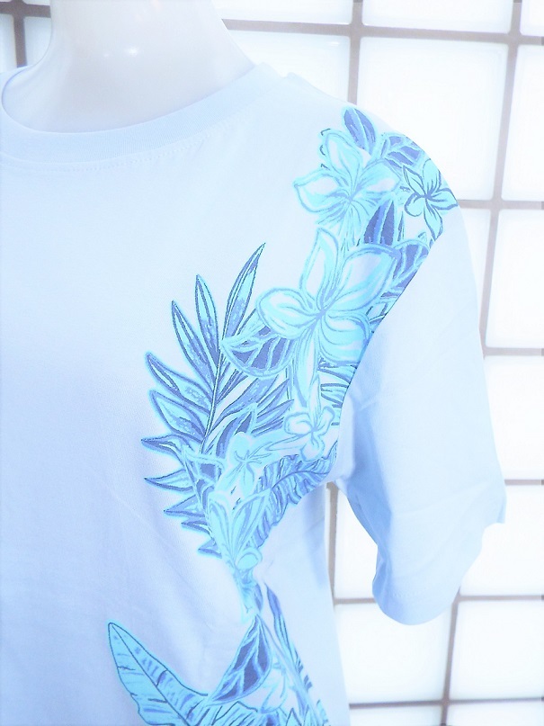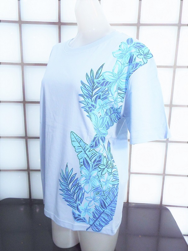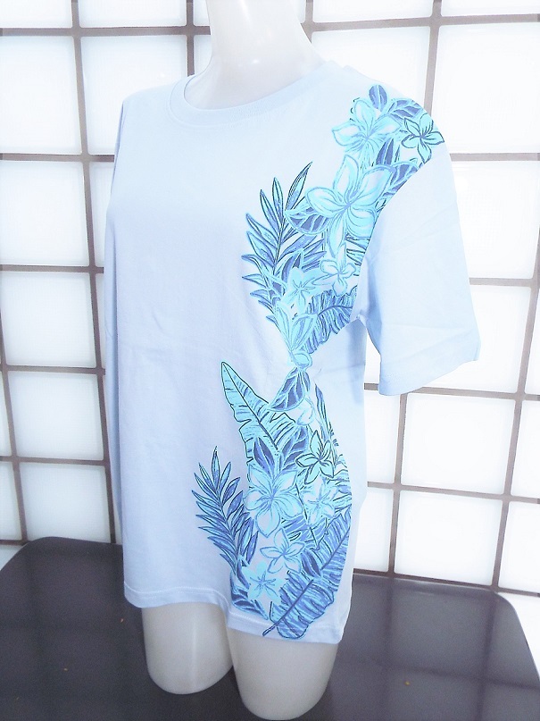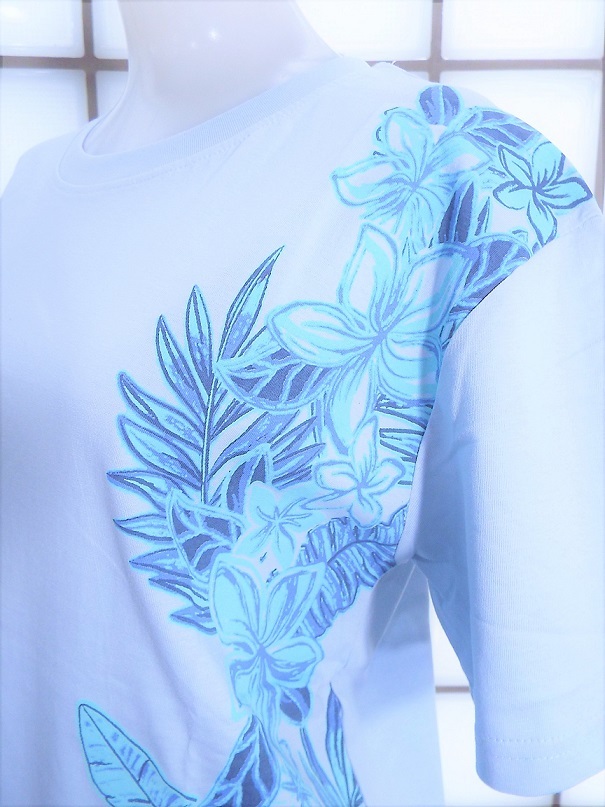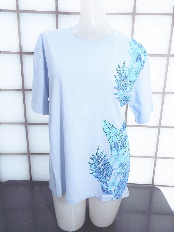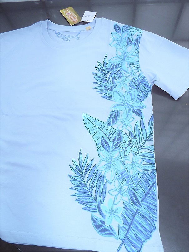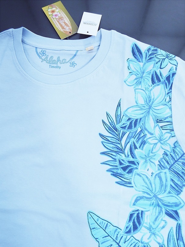 ティモシー 椰子とハイビスカス ライトブルー LLサイズ 天竺 綿100% 半袖Tシャツ 新品 Timothy
