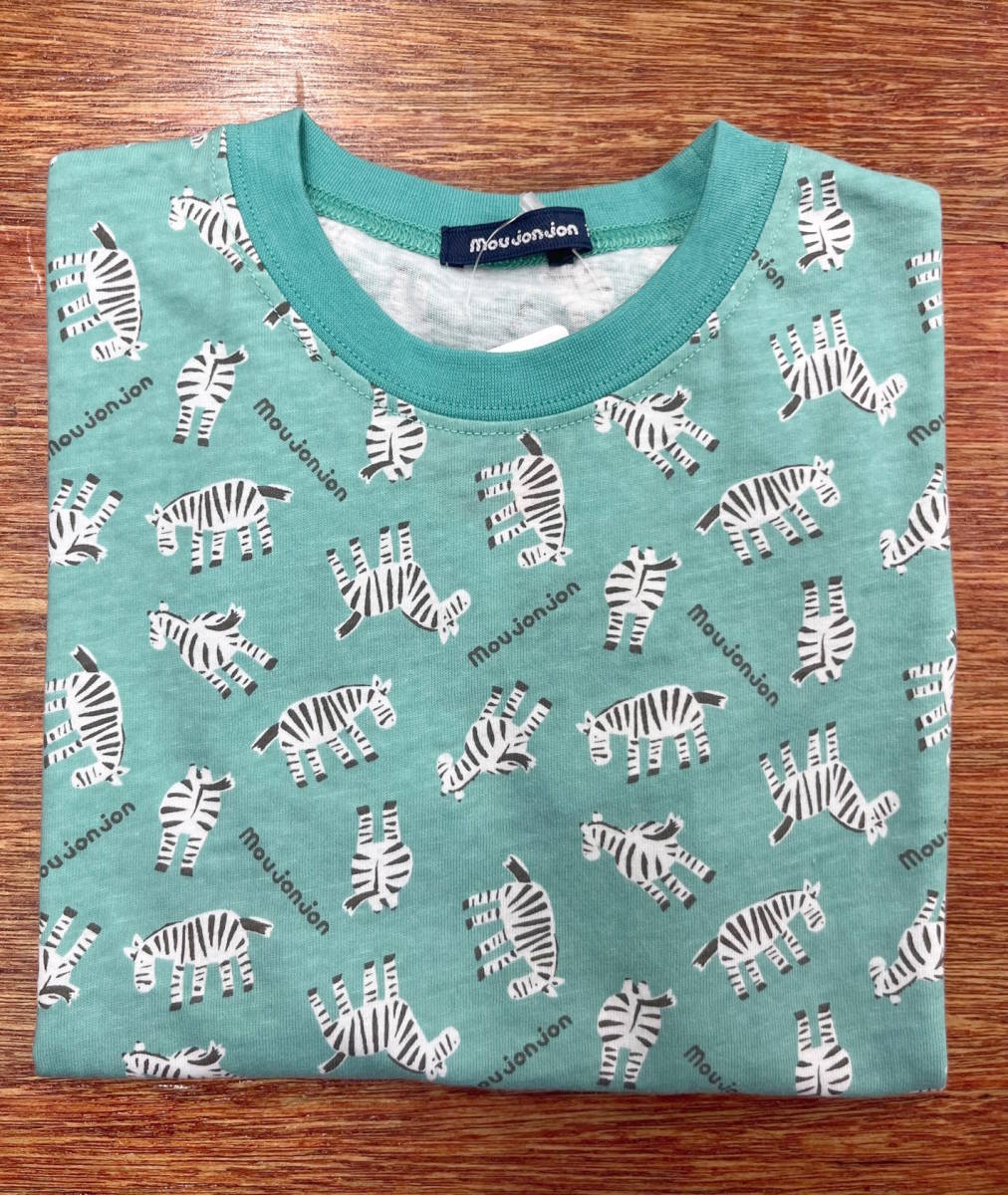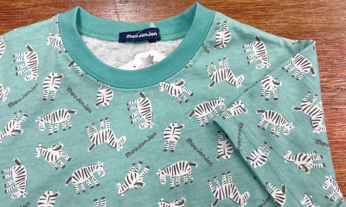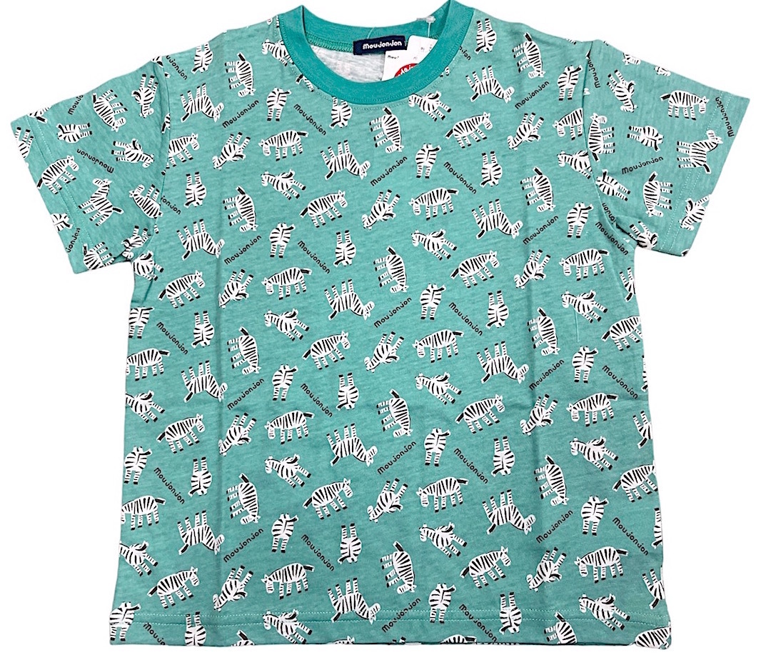 お買い得プライス品 新品タグ付 Moujonjon ムージョンジョン★しまうま柄★天竺 半袖Tシャツ★日本製 130cm 9-10才 ¥1430
