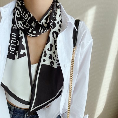 【W-46】新品レディース スカーフ上品ストール巻き方 首元 飾りシルク風 鋭角 おしゃれ多機能ネッカチーフ
