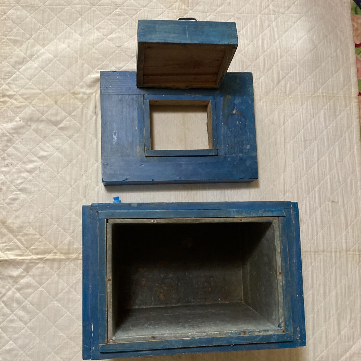 私の土佐.高知.田舎.近所.古い旧家.屋敷の蔵に有った大正.昭和時代.レトロな昔懐かしいアイスキャンディー.ボンボン.ラムネ.サイダー冷い飲物を冷やした木製の冷蔵庫です。当時物.色も当時の其の儘です 使えます。完品です。持ち手を入れた横幅.約49.1c m.持ち手を除けた横幅.約45.6cm.奥行き.約33cm.蓋を除けた高さ31.5cm.全体の高さ.約46. 2cm.蓋の持ち手を入れた高さ.約47cmです。ノンクレーム.ノンリターン.評価の低い入札者は此方でお断りする事が有ります。宜しくお願い申し上げます。