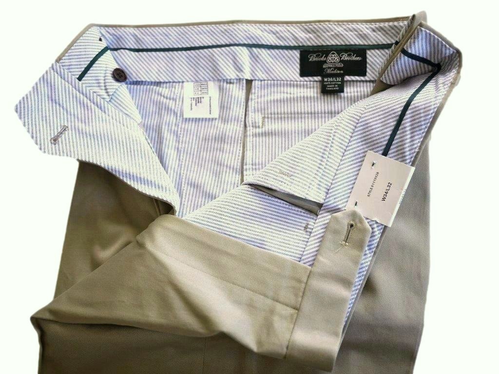 新品【送料無料】W約85-86cm 34/32 ブルックスブラザーズ Country Club Collection カーキ コットンチノパンツ Madison Fit