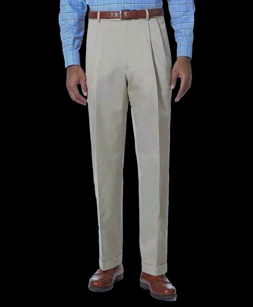 4ポケット・2プリーツ・裾ダブル仕上げ。