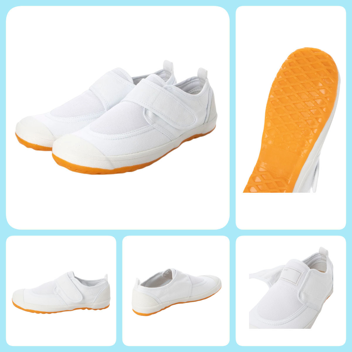 ベルクロ (マジックテープ) タイプのメッシュ上履き。