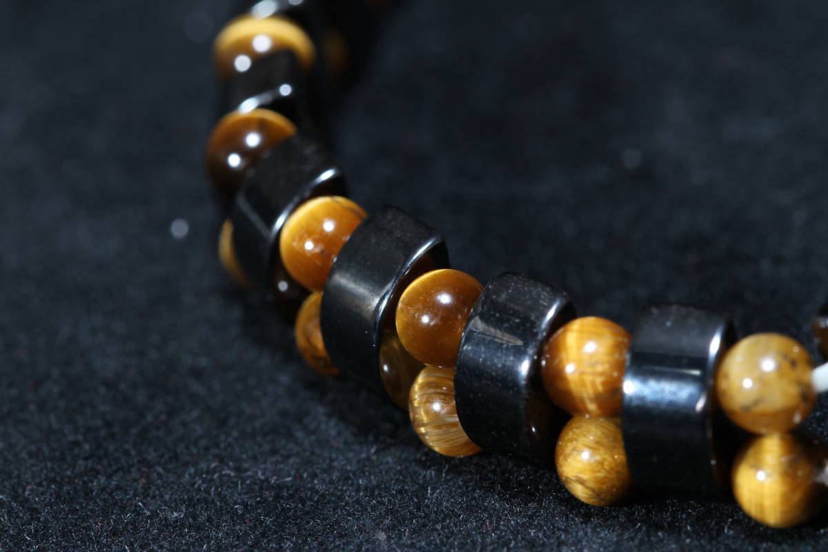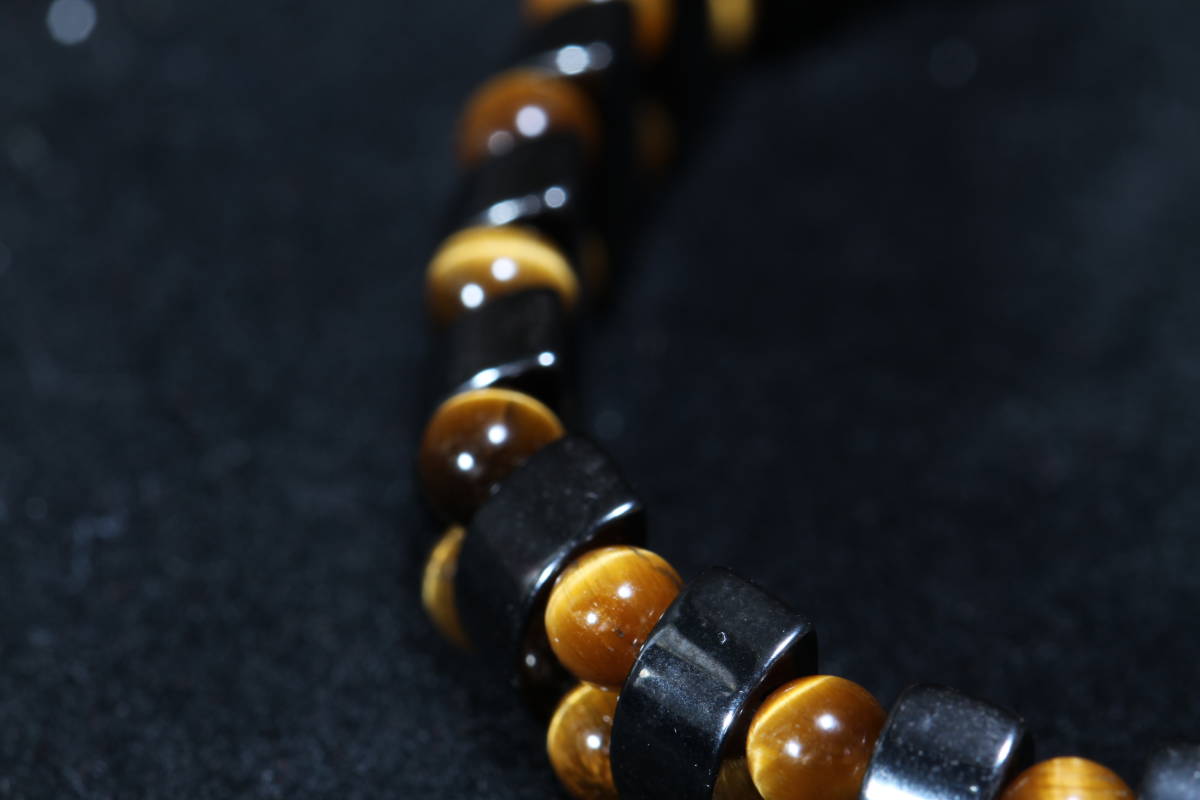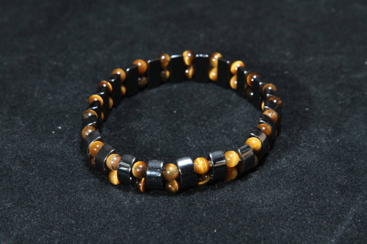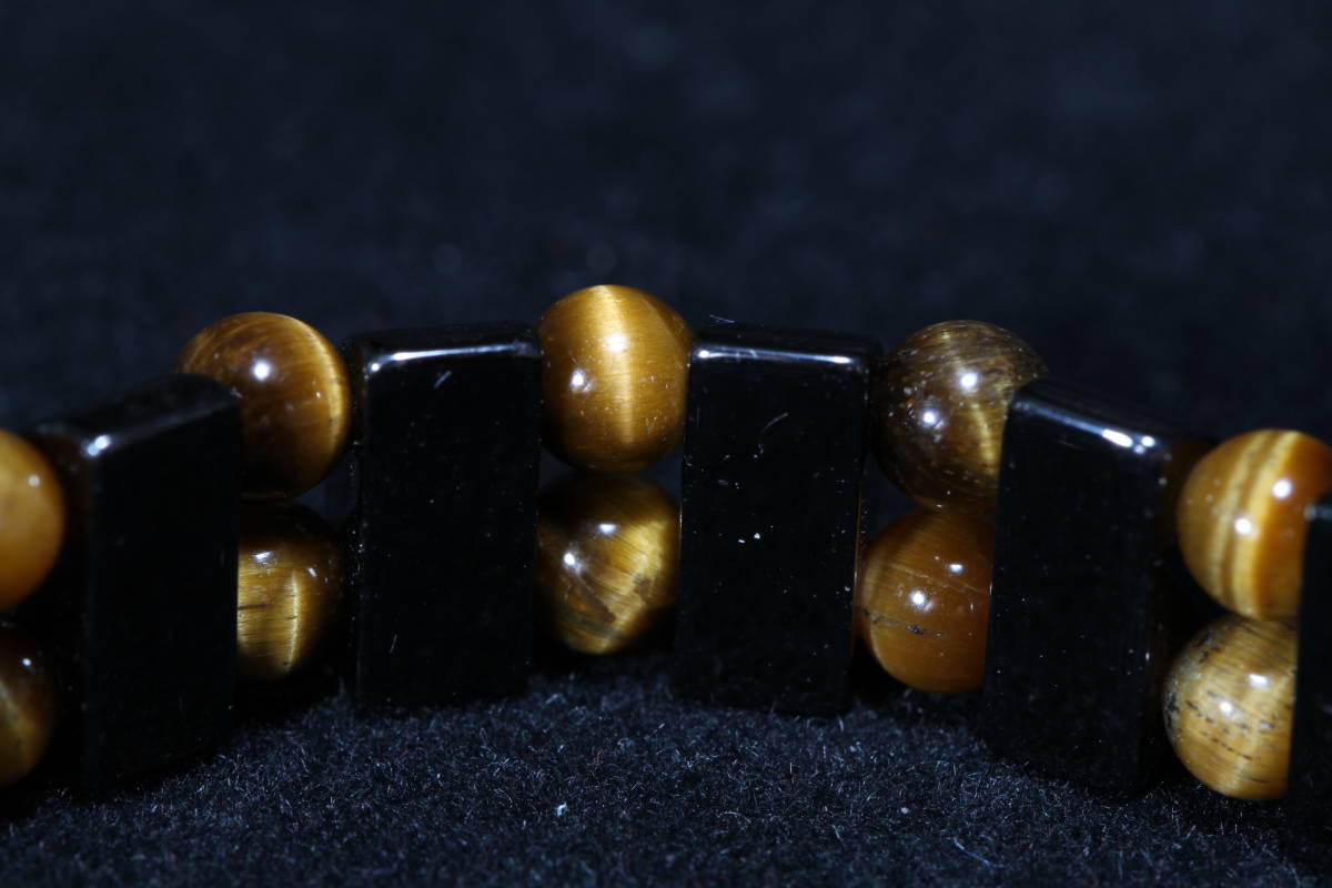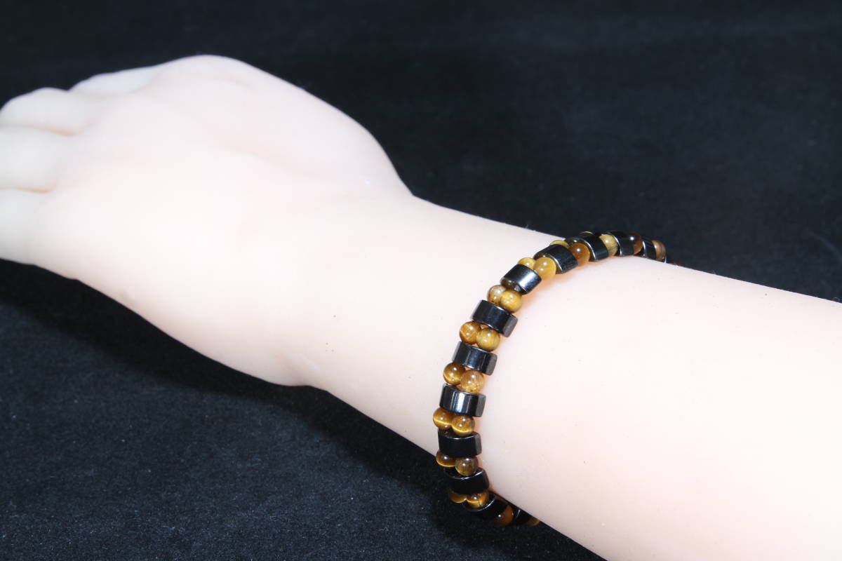 新品送料無料フリーサイズ磁気帯びた健康石【血液に力を与える】天然石半円型ヘマタイト(磁気石) ブレスレット大手にフィット+虎目石