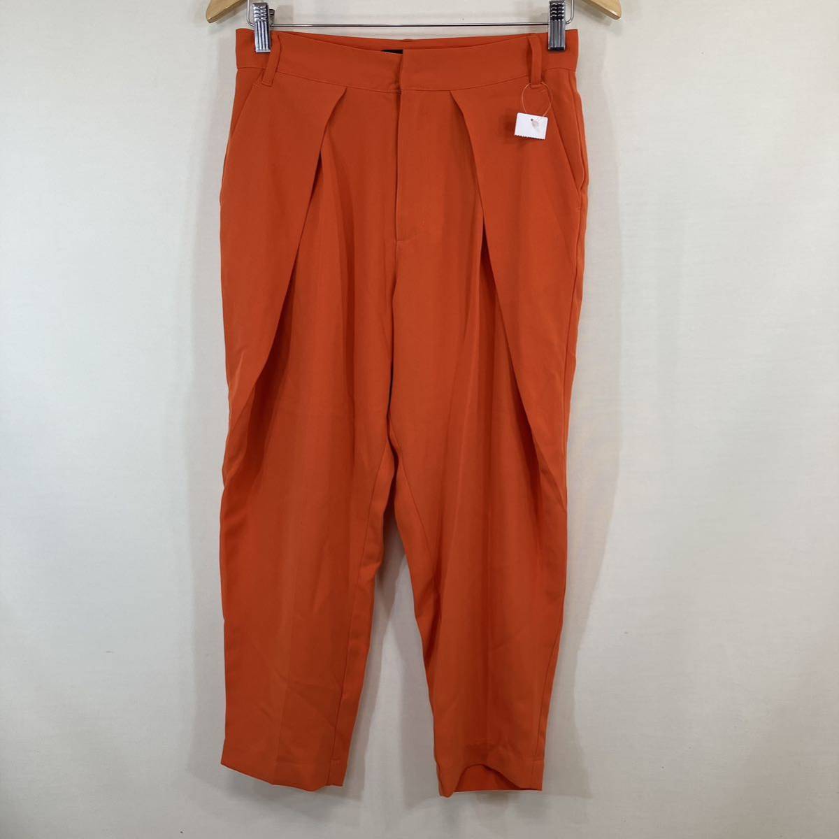自宅保管の未使用品のジーナシスのカジュアルパンツになります。素材はポリエステル100%です。カラーはオレンジで、これからの暖かい季節の差し色にいかがですか?