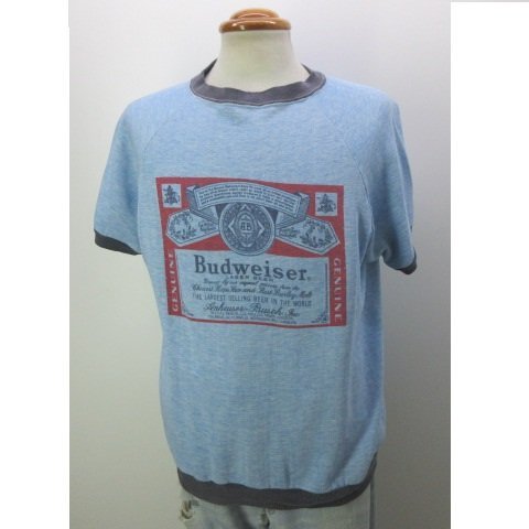 70s 半袖スエット  M バドワイザー ビール 染み込み オールド ビンテージ アメカジ古着 sy3568