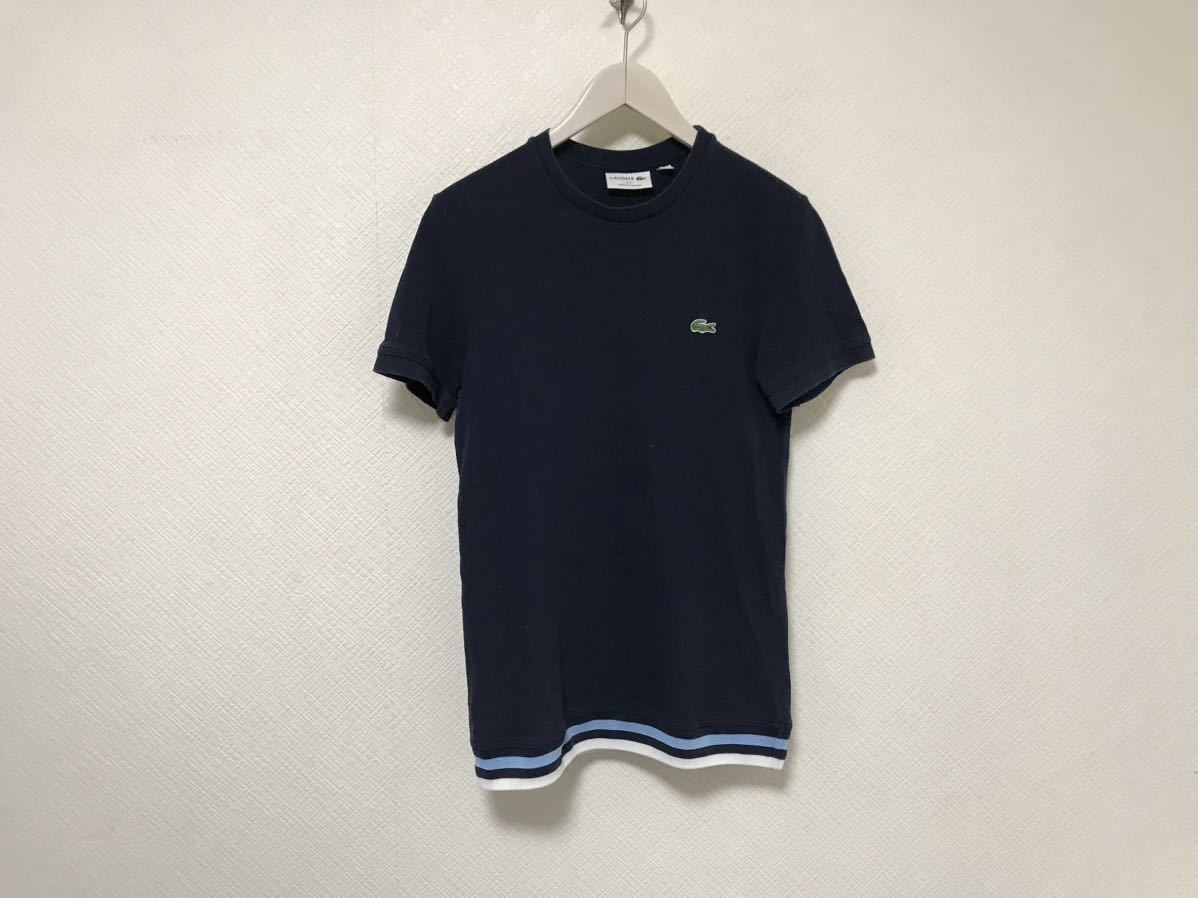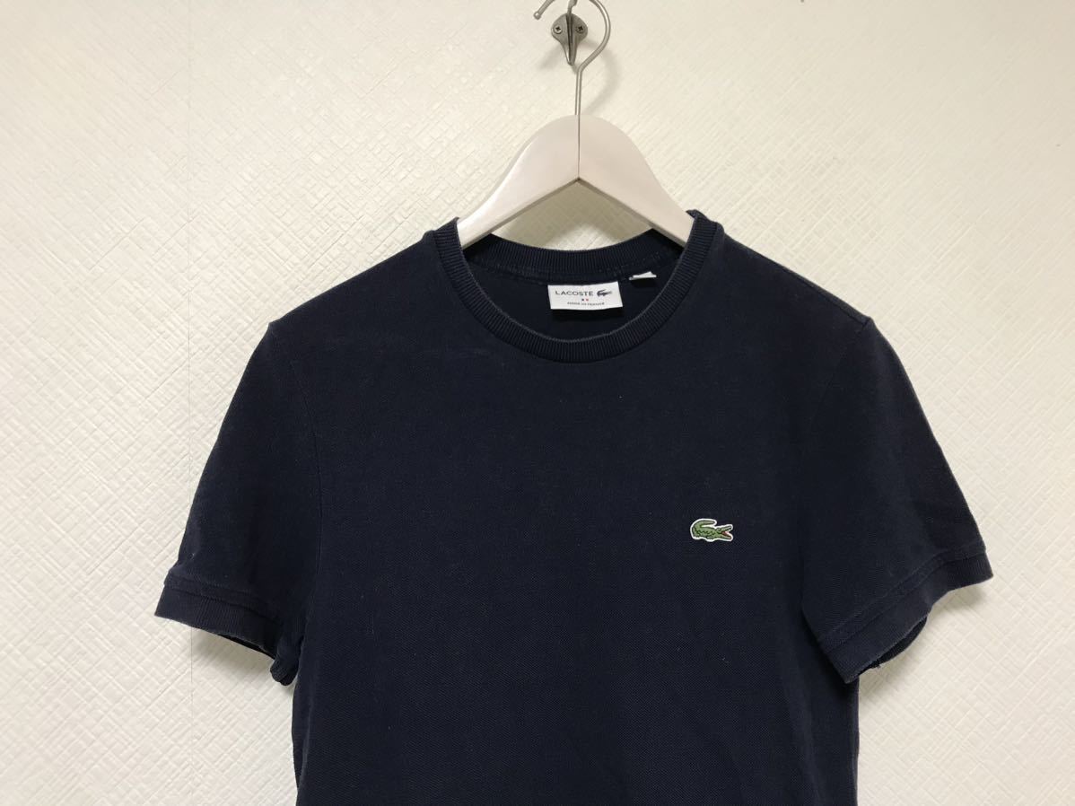 商品名:本物ラコステLACOSTEコットンロゴ刺繍半袖TシャツメンズアメカジサーフミリタリービジネススーツXS紺ネイビー2フランス製スポーツテニス