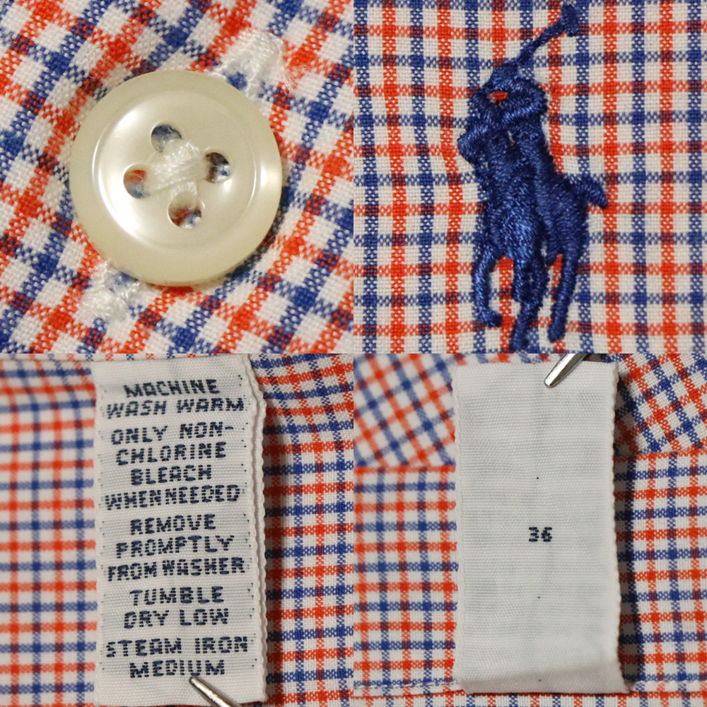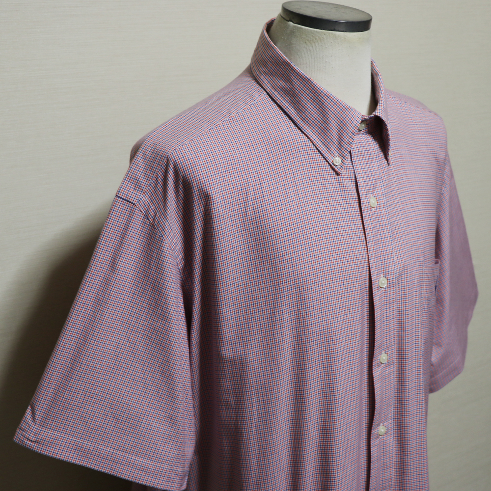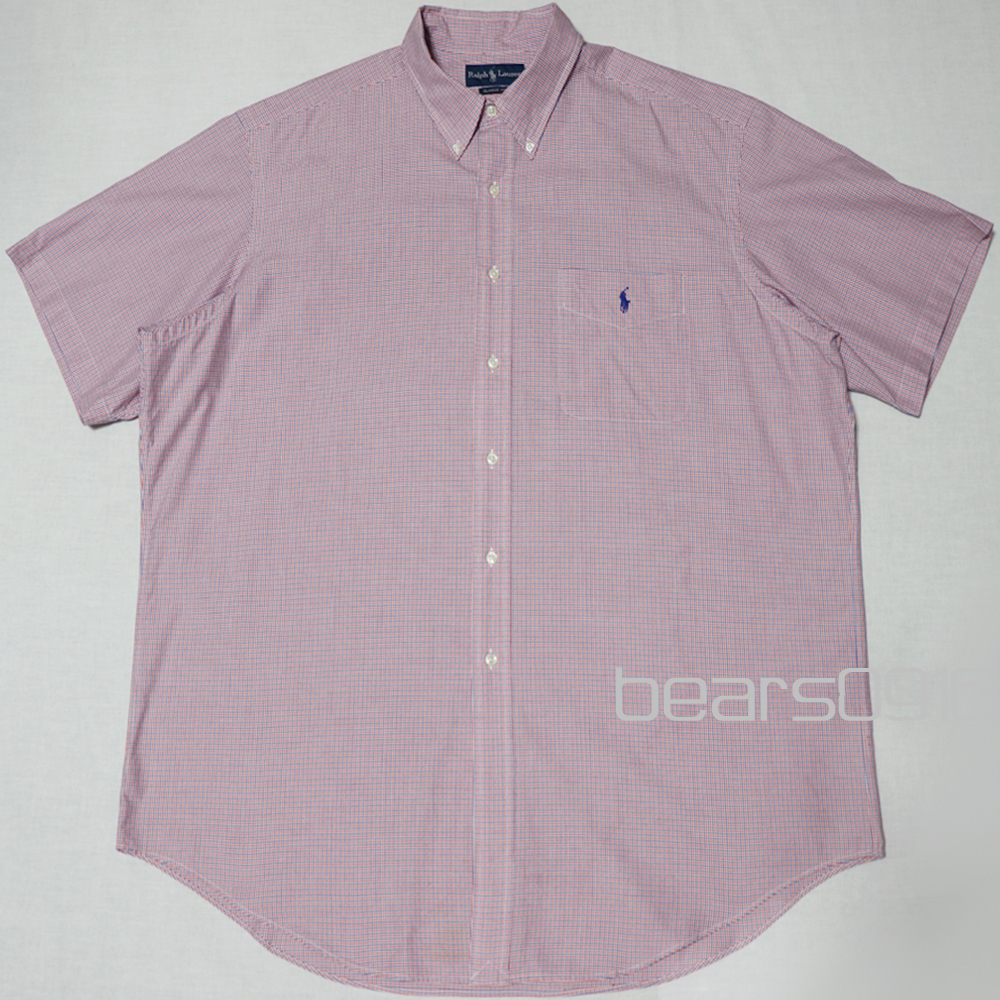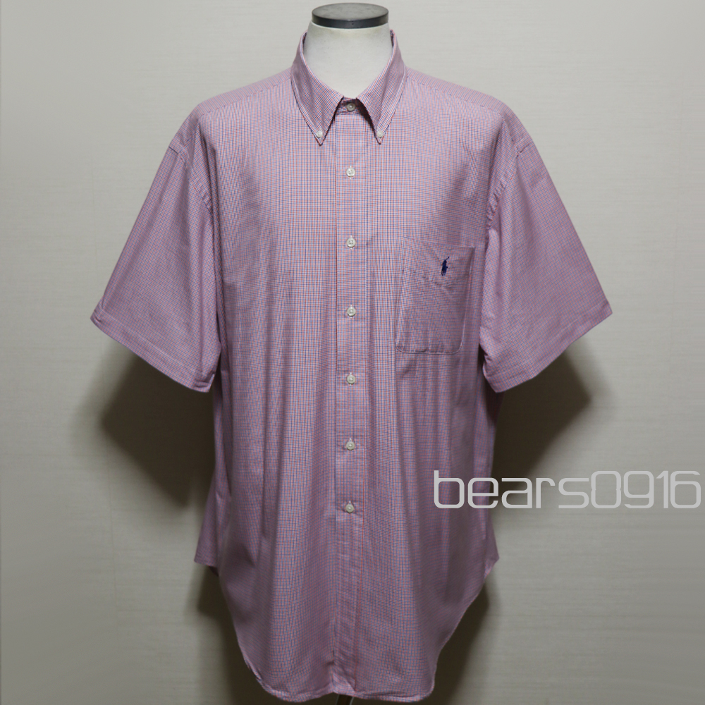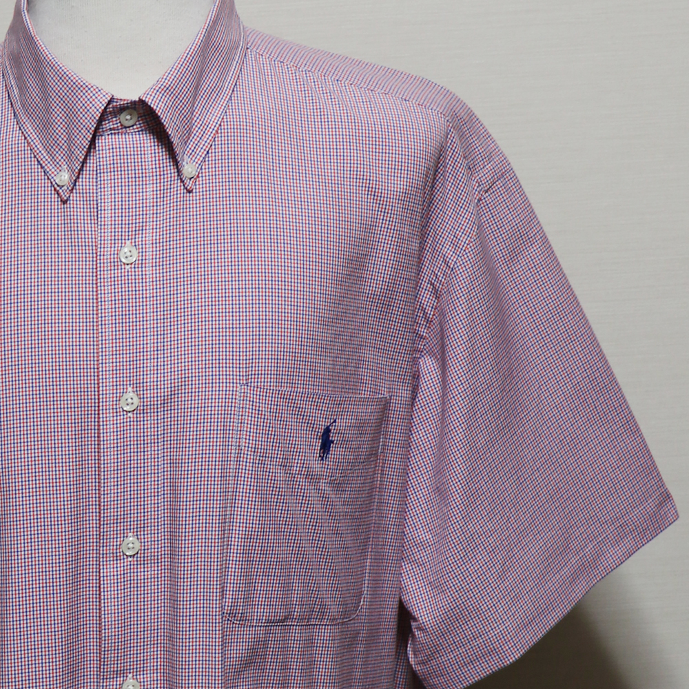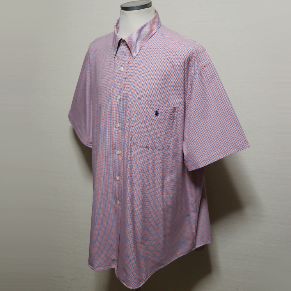 アメリカ購入品 美品 RALPH LAUREN ラルフローレン トリコロールチェック 半袖ボタンダウンシャツ オレンジ青白 XXL サイズです。