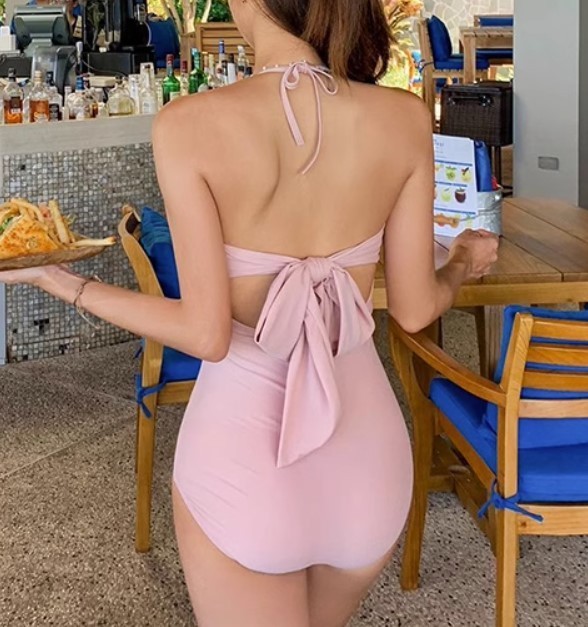 ★★★大反響の予感! レディース 水着 ワンピース ホルターネック ハイウエスト バックリボン f90