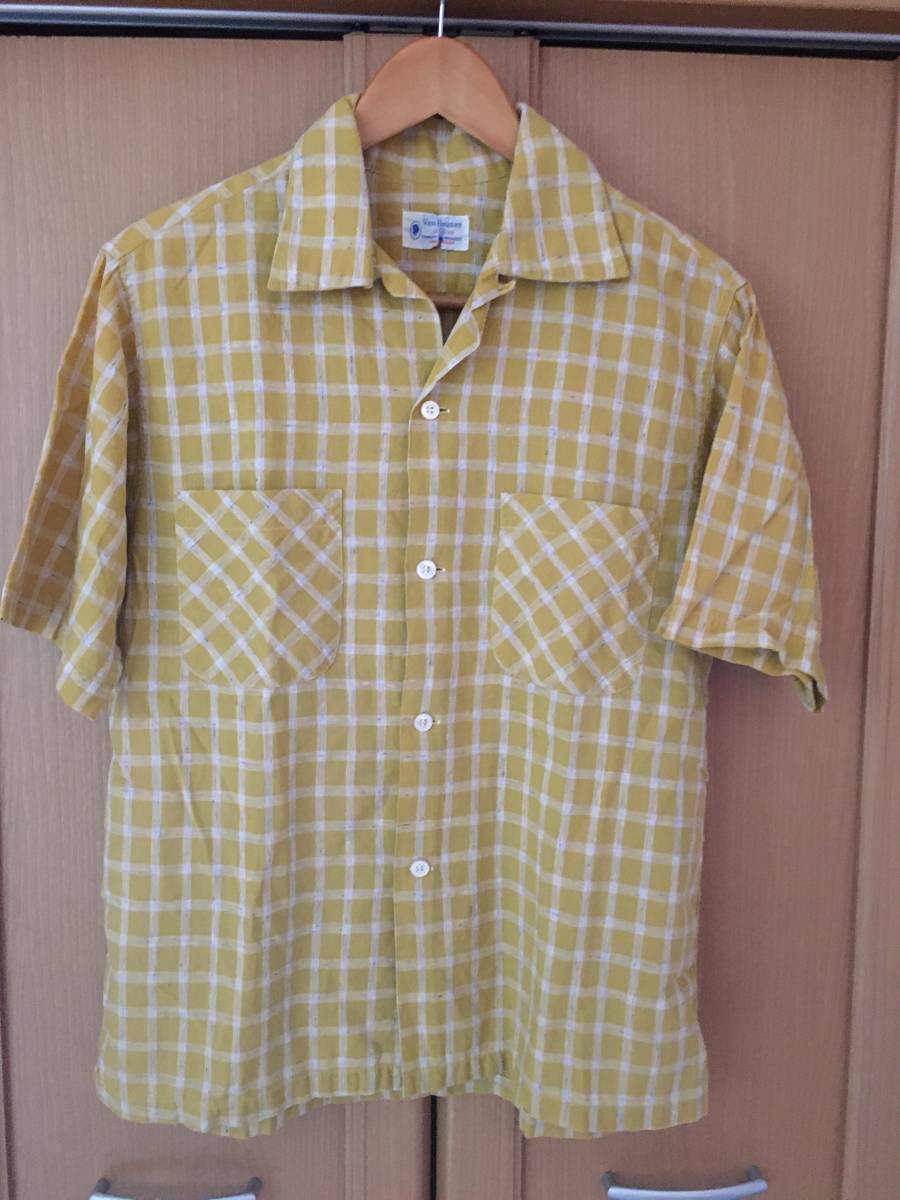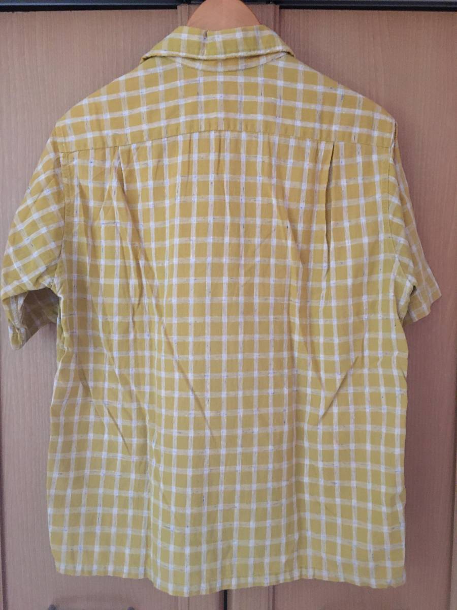 イエローホワイトの柄に青とオレンジ系のカスリが入った柄になっています。