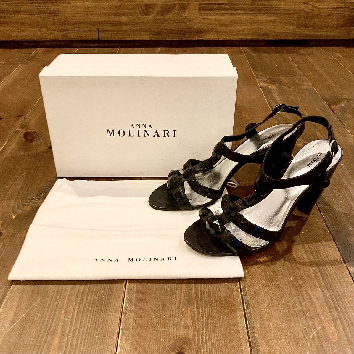 最終 SALE!! 極美品 セレブ御用達 ANNA MOLINARI アンナモリナーリ レディース 高級パンプス 靴 ビジュー付 シューズ イタリア製 サイズ 40