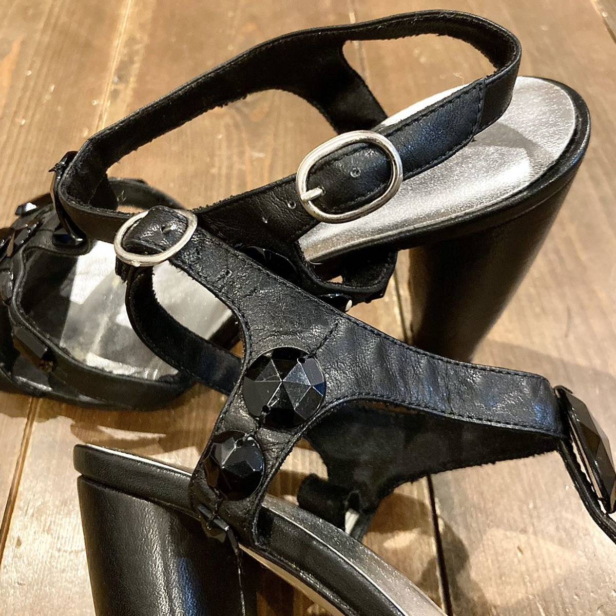 ブラックカラーのビジュー装飾付き