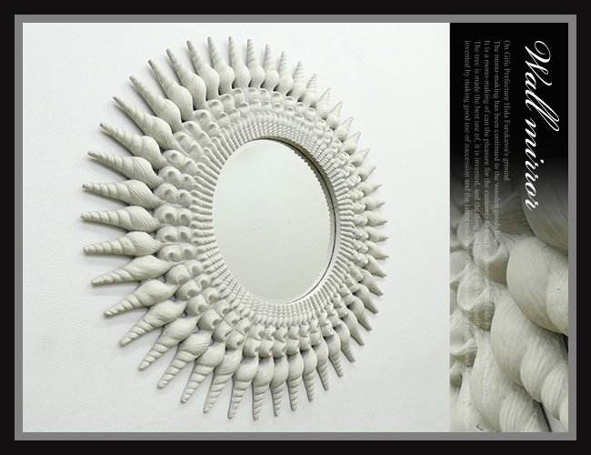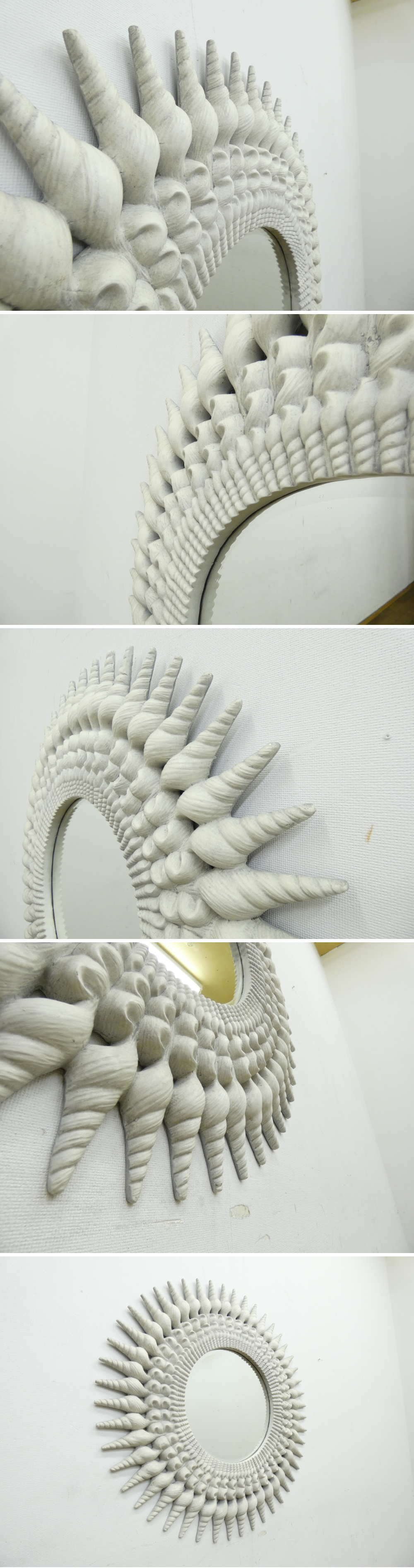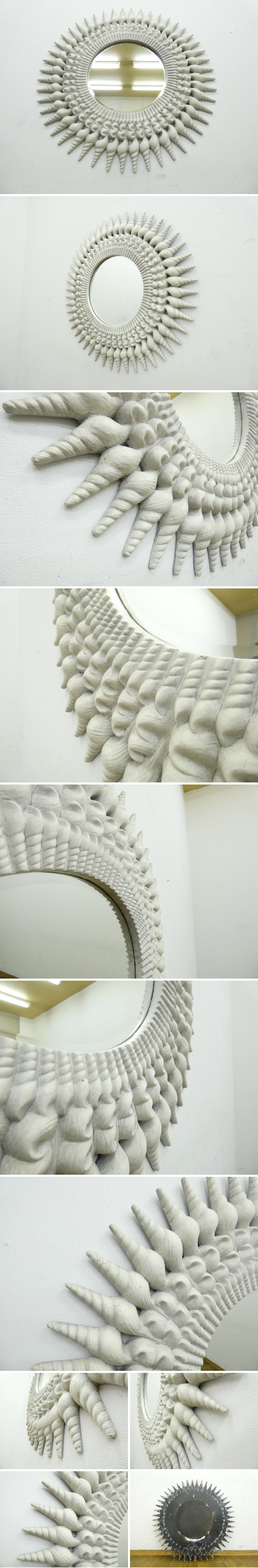 ◆NK679◆展示品◆ラグジュアリー◆ウォールミラー◆壁掛け鏡◆丸型 丸鏡 ラウンド◆太陽 シェル◆ラグジュアリー◆マリンスタイル◆インテ