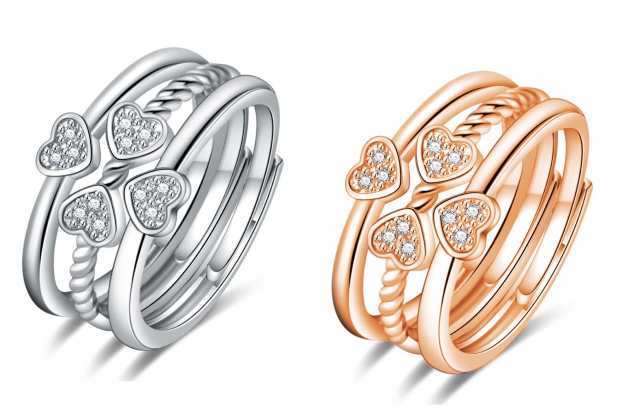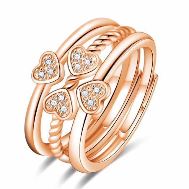 幸運のお守り 四つ葉指輪 ハートリング レディースリング 指輪 スライド調整 アレルギー対応 ジュエリー 指輪レディース ピンクゴールド