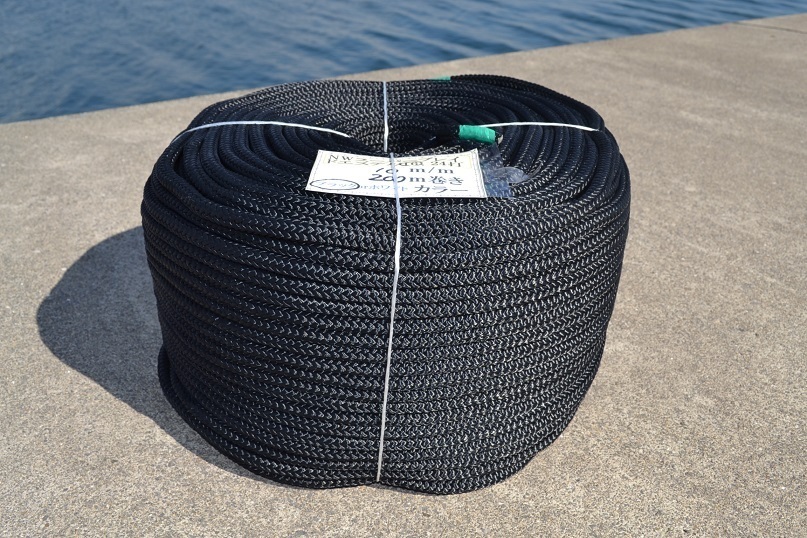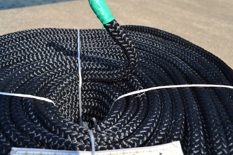 ▼ブラック、ネイビー色のスーパーエステルブレイド16、24打ちマリンロープは、近年マリーナの流行の係留ロープ、アンカーとしてもてはやされております。