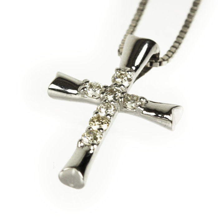 コメント | クロスのダイヤモンドネックレスです。 とても上品にキラキラと輝きます★どんなコーデにも合います♪ K18が使われているため、地金積立・資産としてもオススメです! ※中古品のため、部分的なキズがございます。 ぜひ、この機会にいかがでしょうか。 |