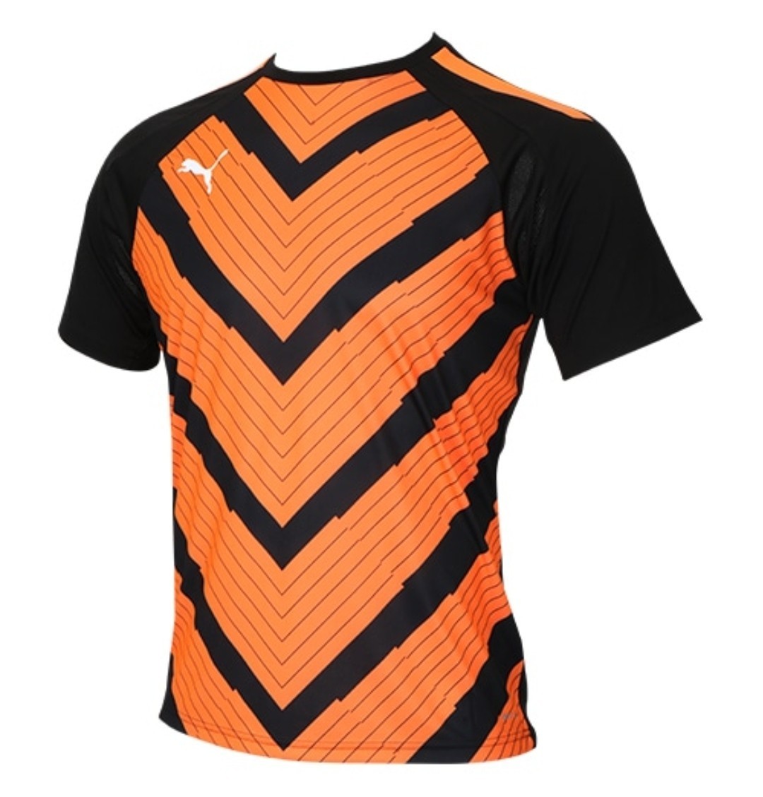 詳細クルーネック前身頃に昇華型グラフィックプリント肩には転写PUMAフォームストリップ右胸にPUMAのキャットロゴ