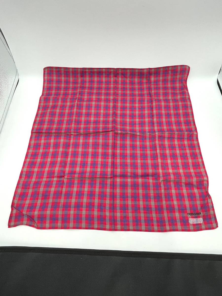 renoma レノマ スカーフ バンダナ ハンカチ レッド系 チェック柄 ユニセックス
