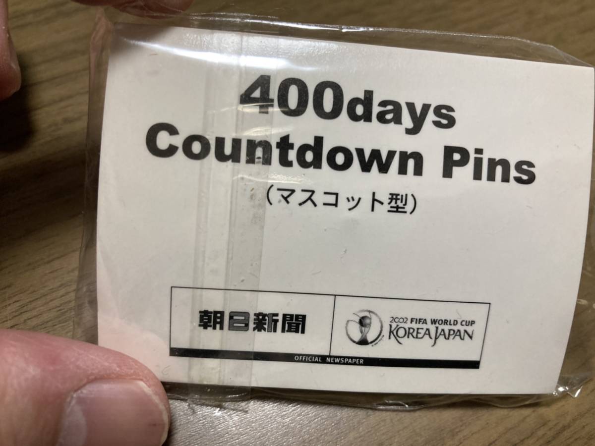 ・2002 FIFA WORLD CUP 朝日新聞 400daysカウントダウンピンバッジ マスコット型 新品未使用です。