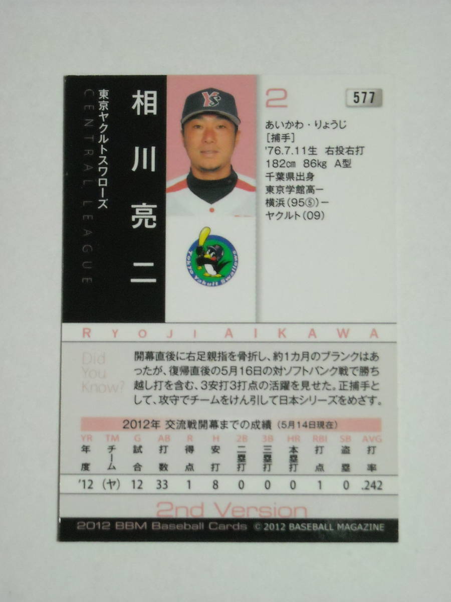 相川亮二 #577 BBM 2012 東京ヤクルトスワローズ 千葉県市川市 東京学館高等学校卒 通算打数4429 打率260