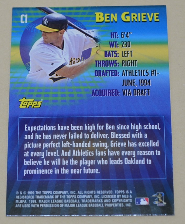 超レア 1999年 BEN GRIEVE アメリカ プロ野球 トレーディングカード 美品