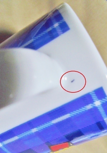 <状態>マグカップは未使用ですが取っ手上付近に小さい初期汚れ、底に小さい欠けかデコボコのザラつきあり。箱は写真のように破れやヘコミ、汚れ等あり状態がよくありません。