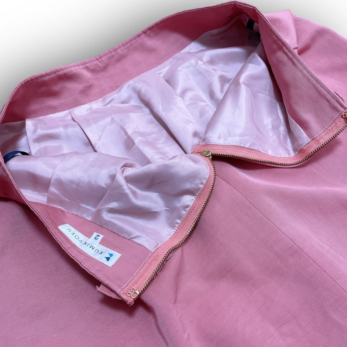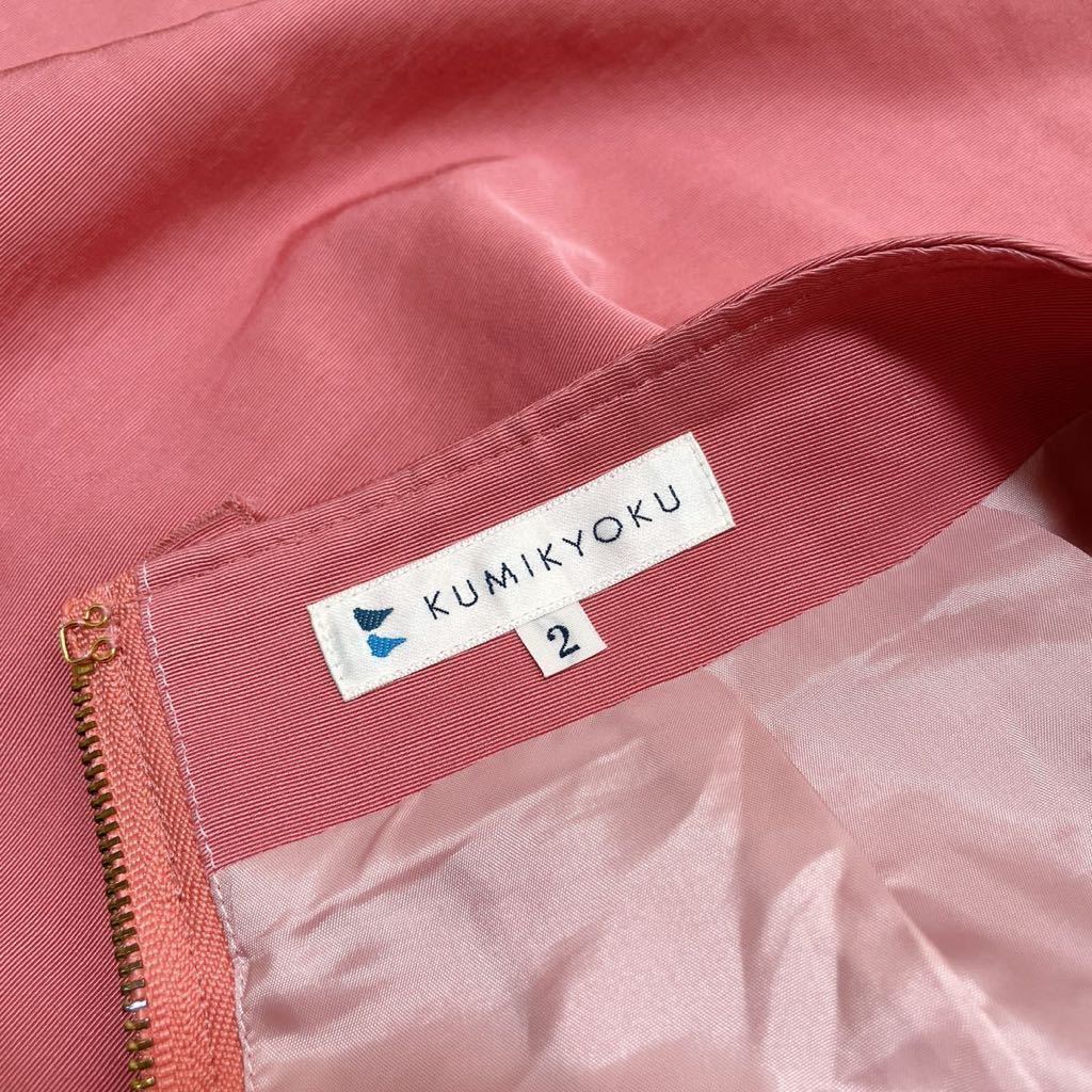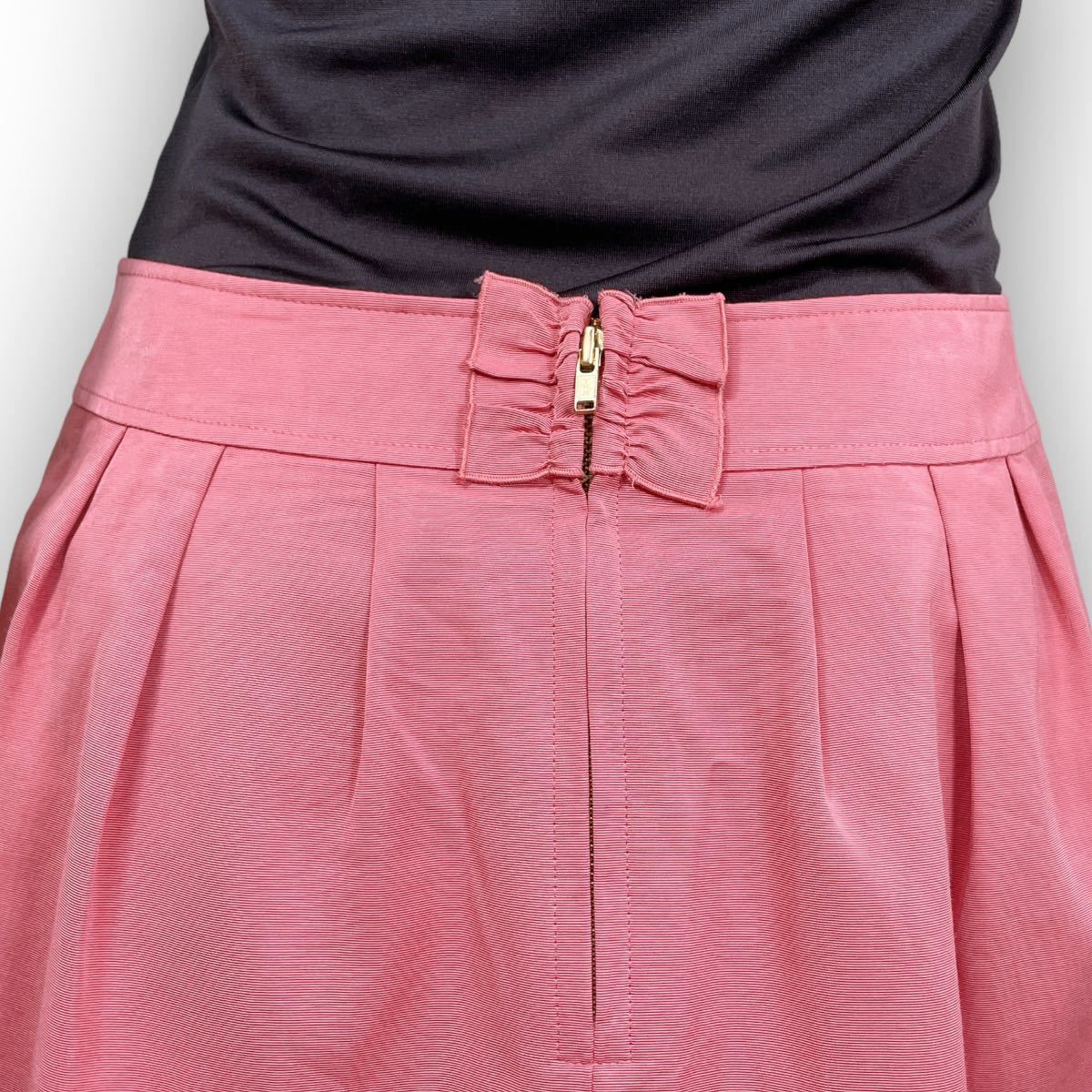 M2669★良品★KUMIKYOKU 組曲 オンワード樫山 タックスカート 膝丈 バックリボン サイズ2 M相当 ピンク レディース 上品 万能 大人可愛い