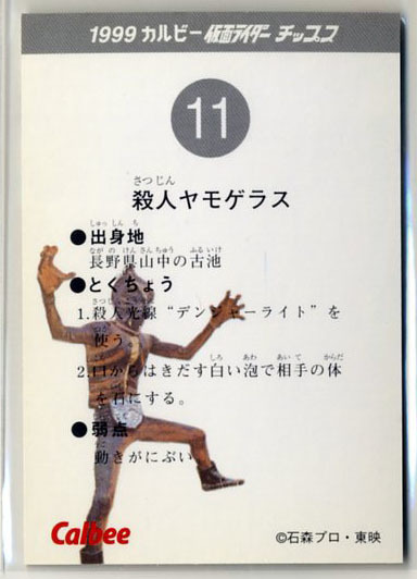 | ◆防水対策 厚紙補強 カルビー 仮面ライダーチップスカード(1999 復刻版) 11番 殺人ヤモゲラス トレカ 即決 | |