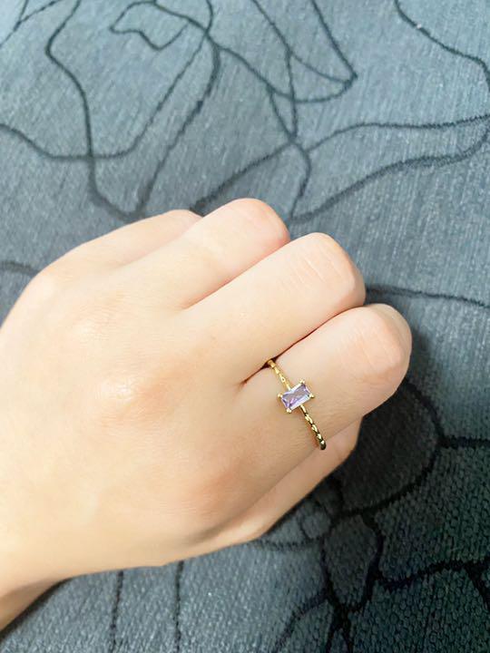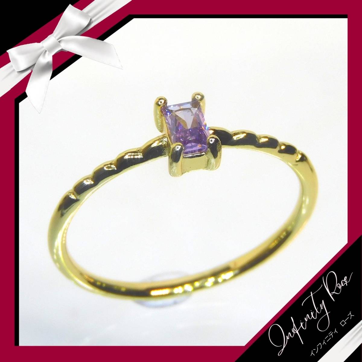 (1136)18号 ゴールド×パープル 細身の小さなクリスタルリング スワロフスキー製クリスタル使用