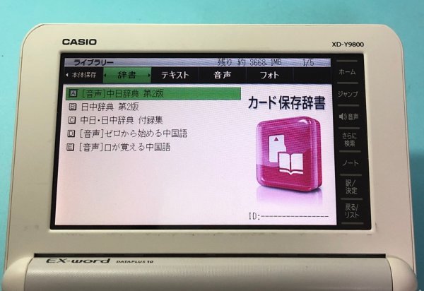 さらに、中国語コンテンツ(中日辞典、日中辞典、文法中心ゼロから始める中国語、口が覚える中国語など)を収録したmicroSDカードも追加されています。