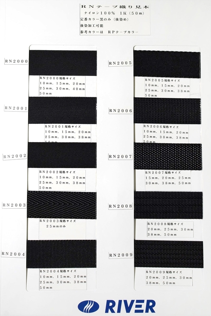 ナイロン100%のRNテープは、それぞれ織り目が異なります。