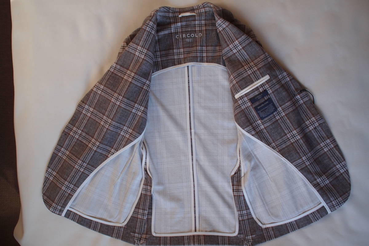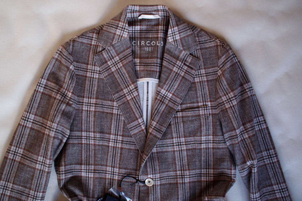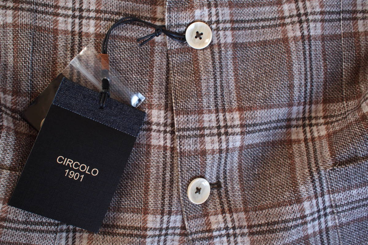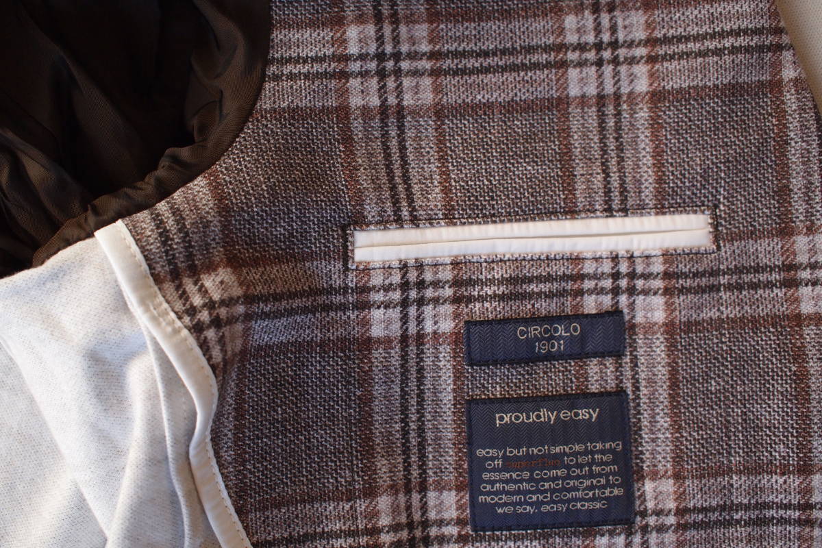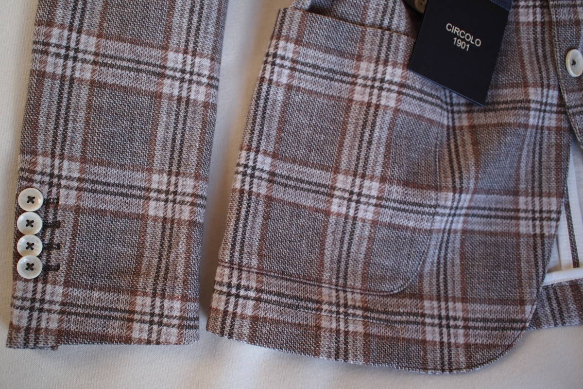 新品タグ付 イタリア CIRCOLO 1901 春夏 コットン混 ピケ調 ダークベージュ系 織柄 チェック 2B ジャージージャケット 50サイズ(L~XL相当)