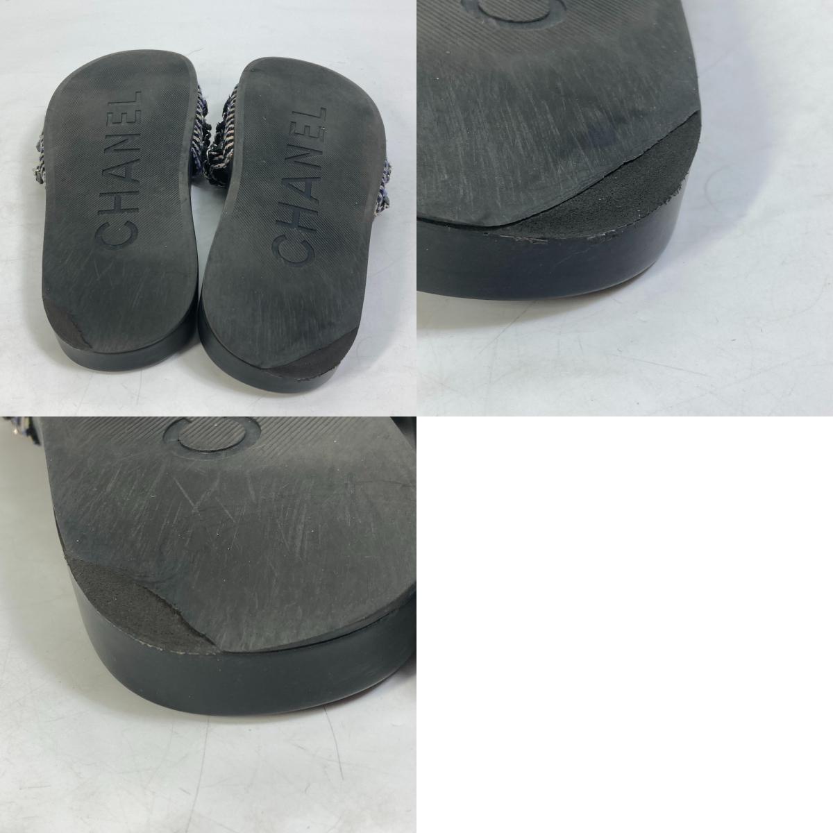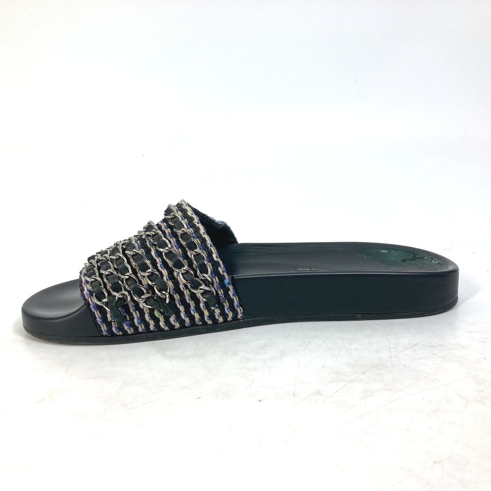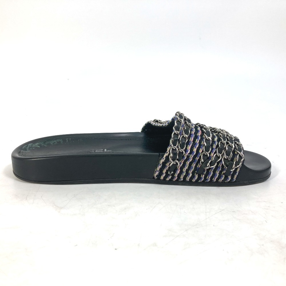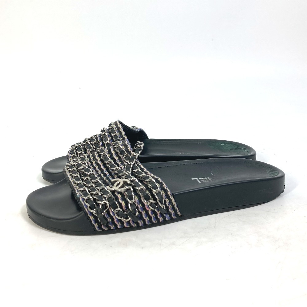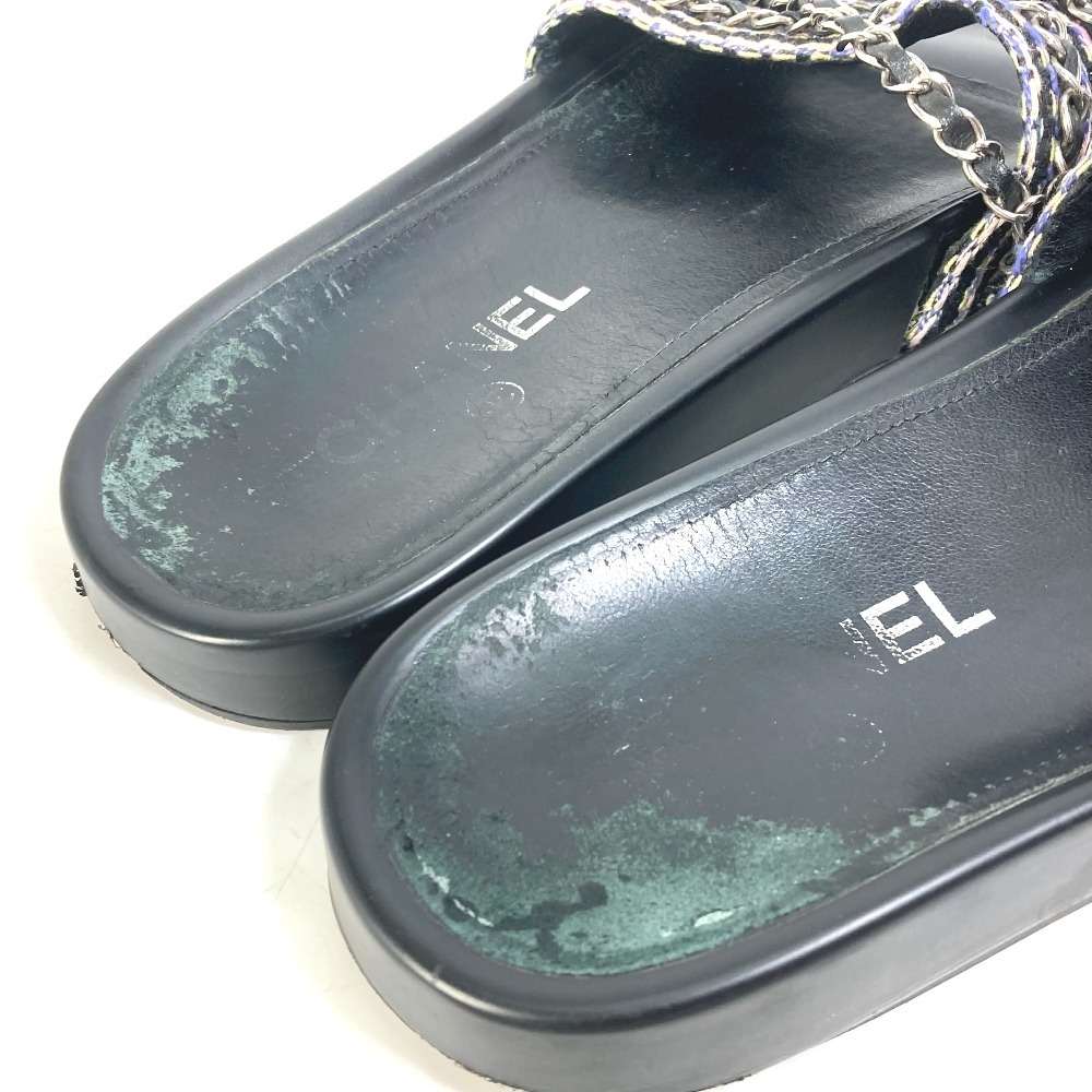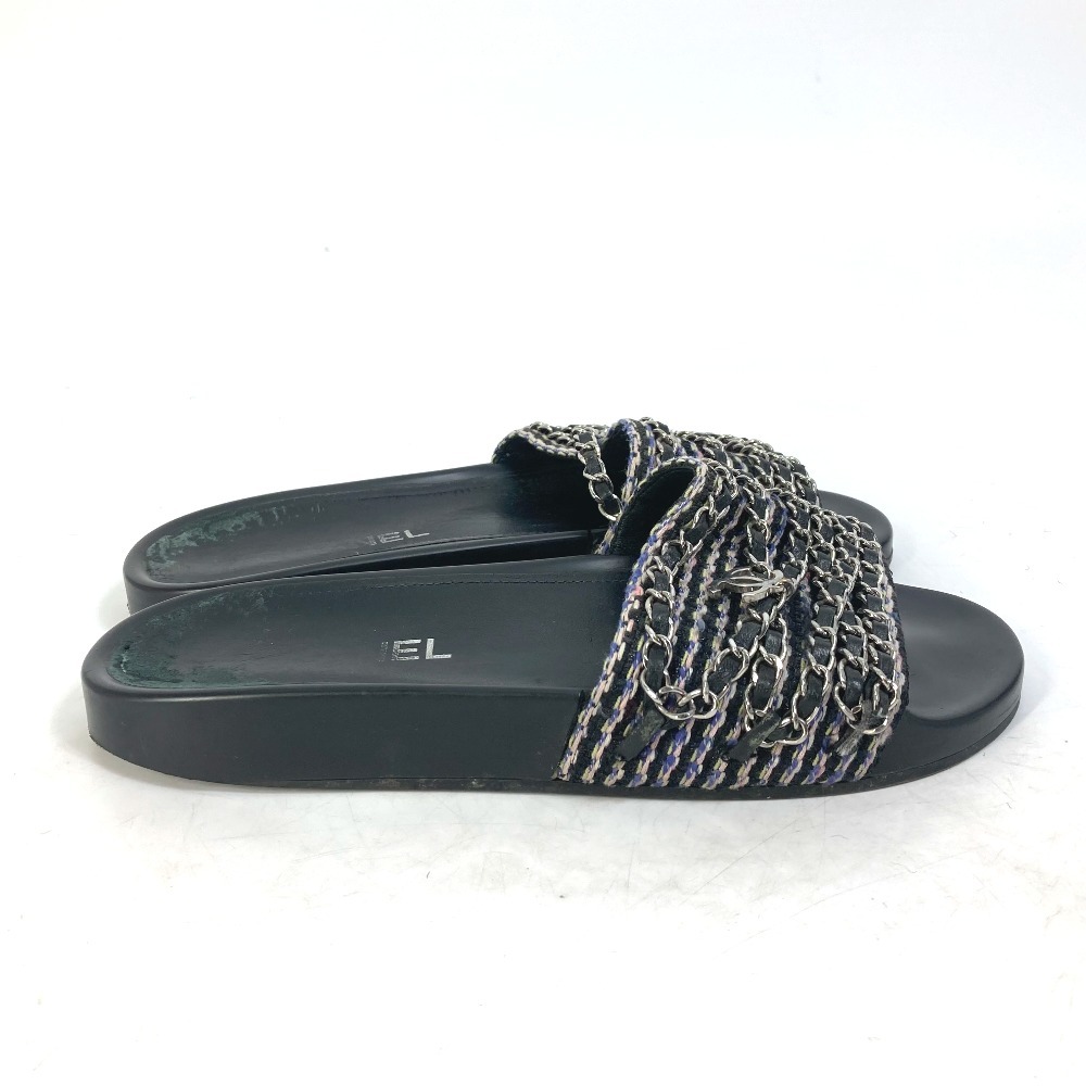 CHANEL シャネル G31627 CC ココマーク 6連チェーン 靴 フラット ペタンコ サンダル レザー ブラック レディース【中古】