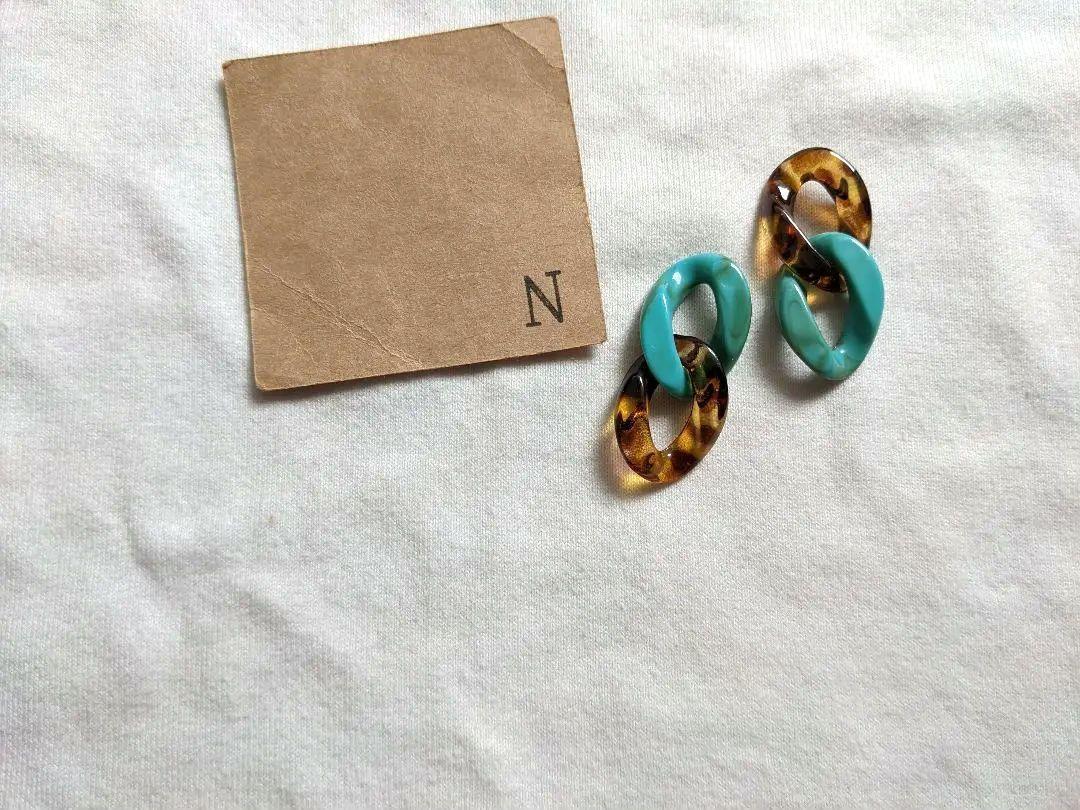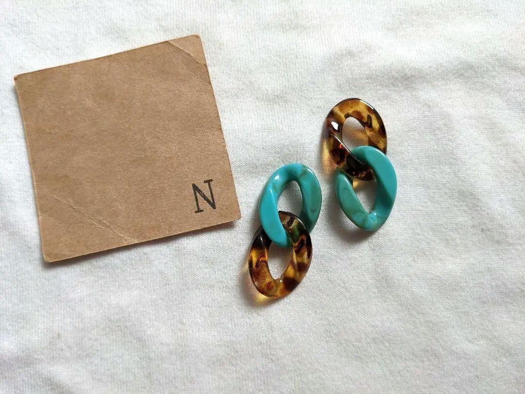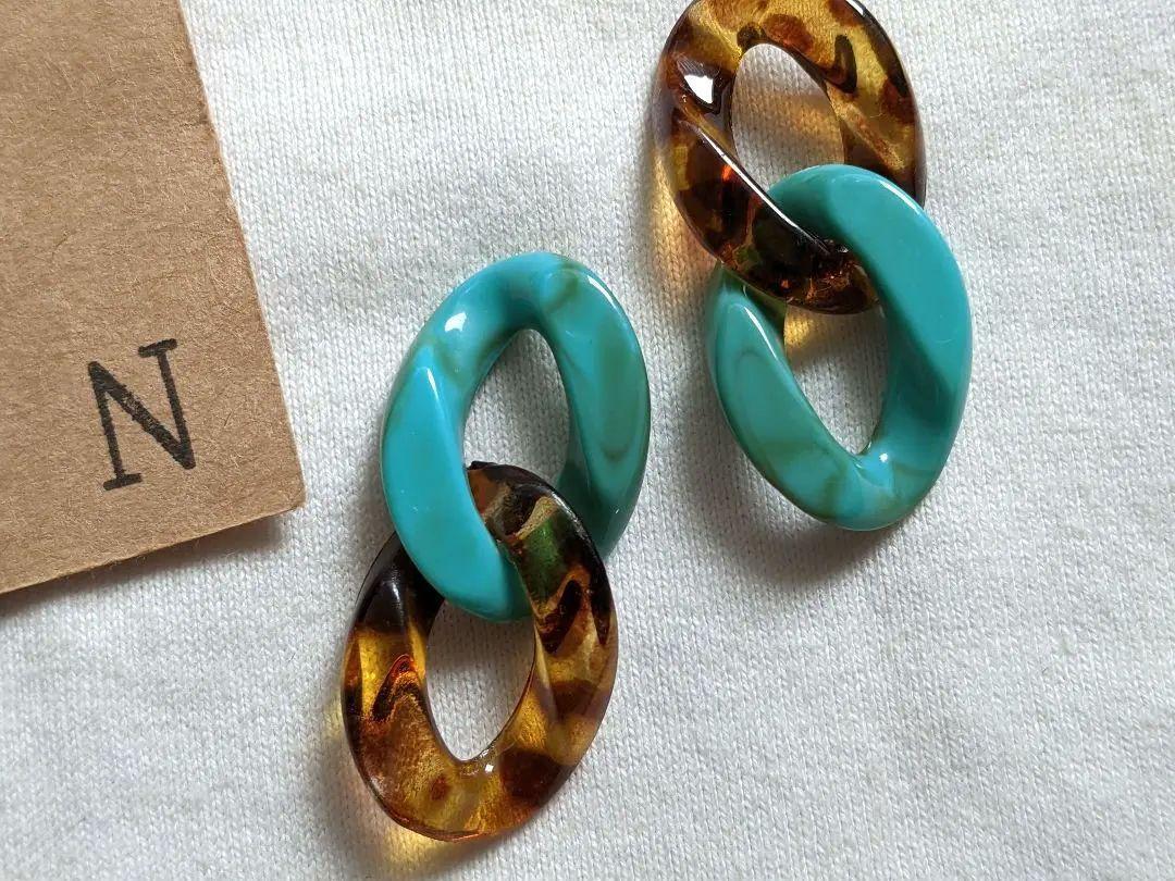 ターコイズマーブルカラーとレオパード柄のチェーンピアスをアシンメトリーにしました。デニムやパーカーなどのカジュアルスタイルやロングワンピース、ロングスカートなどのリゾートスタイルにもおすすめです。