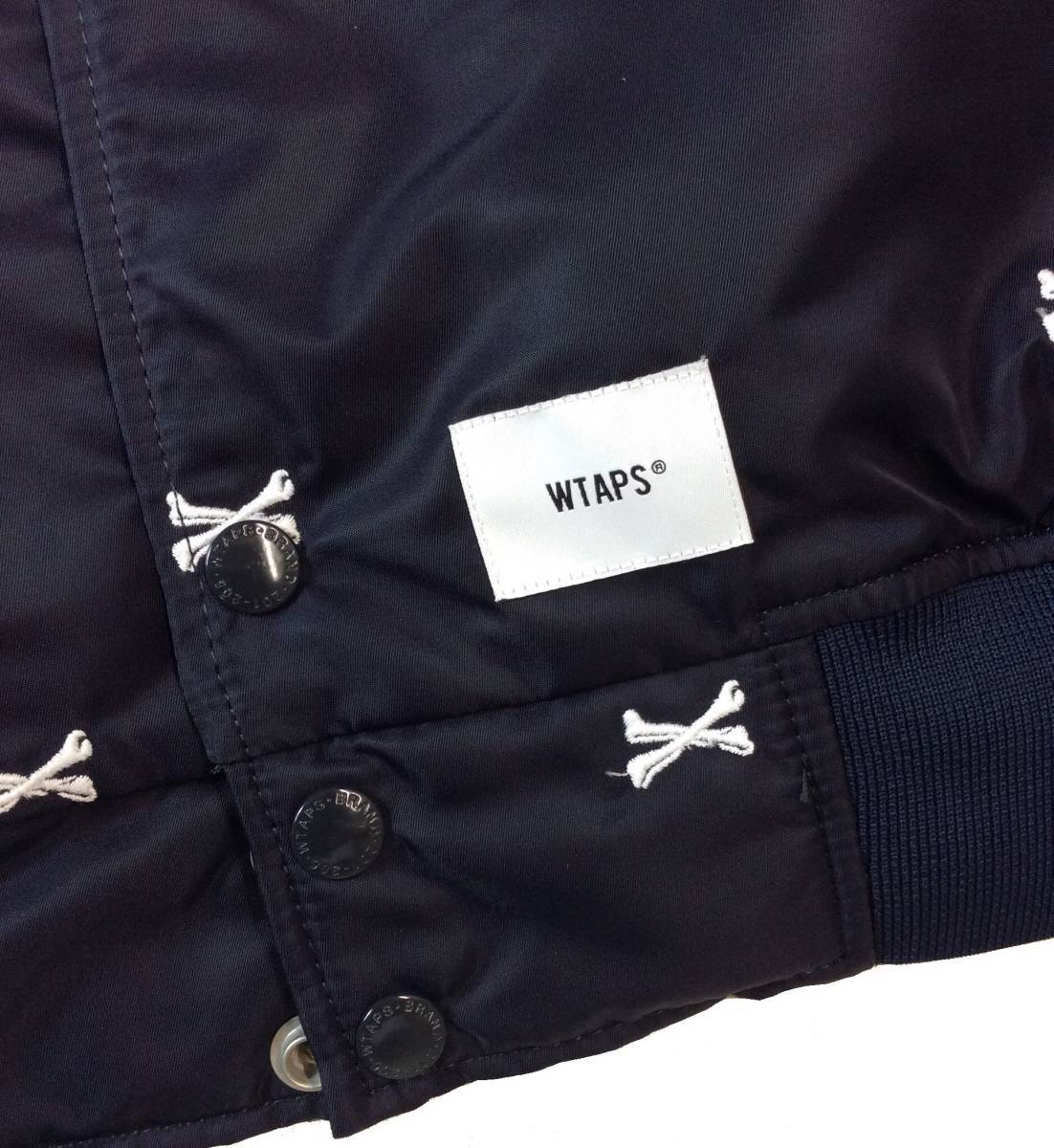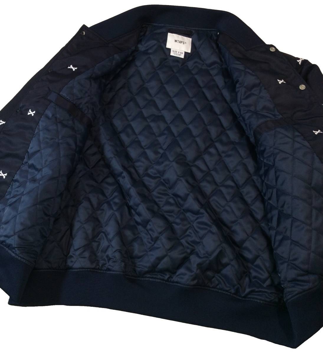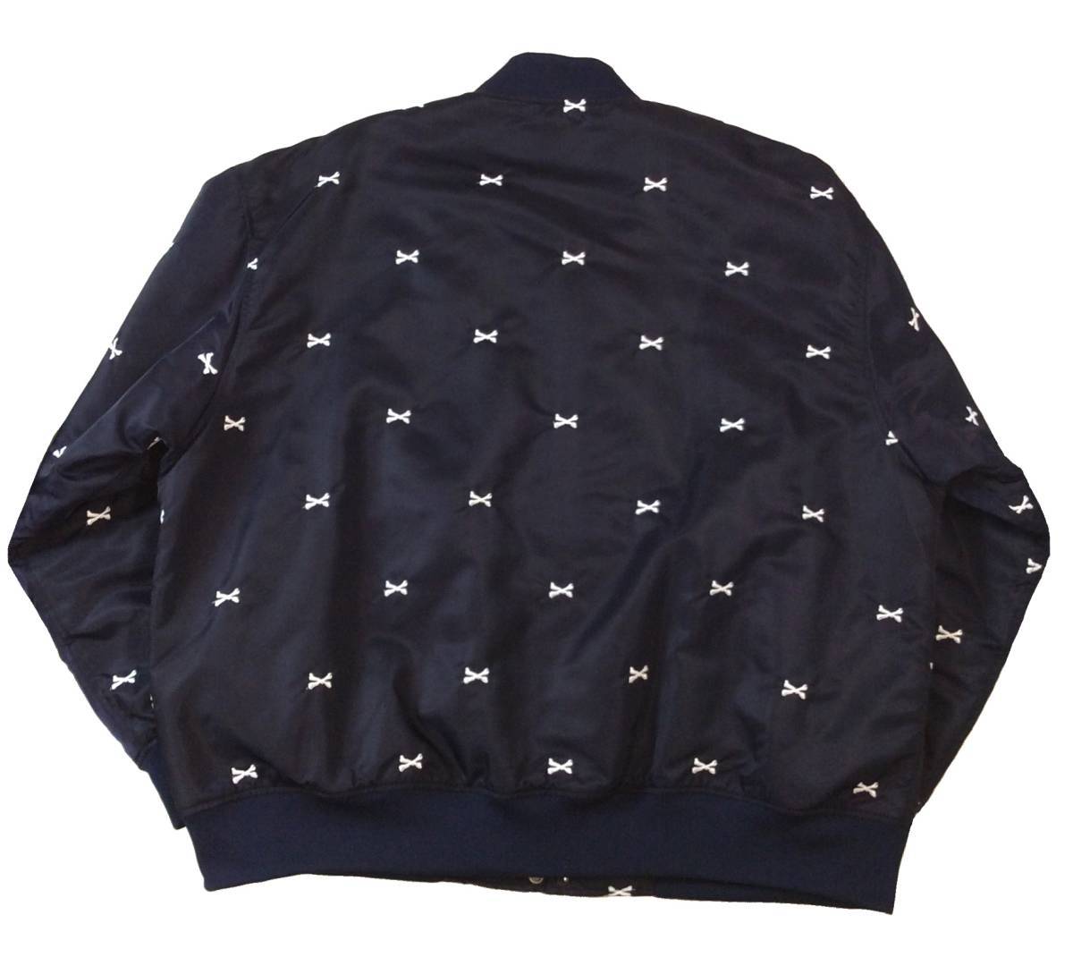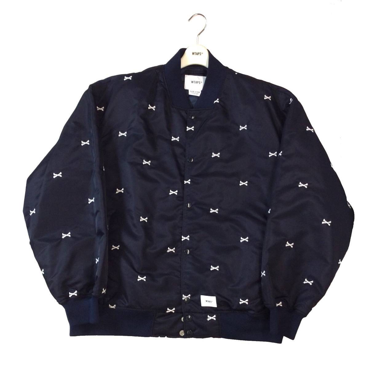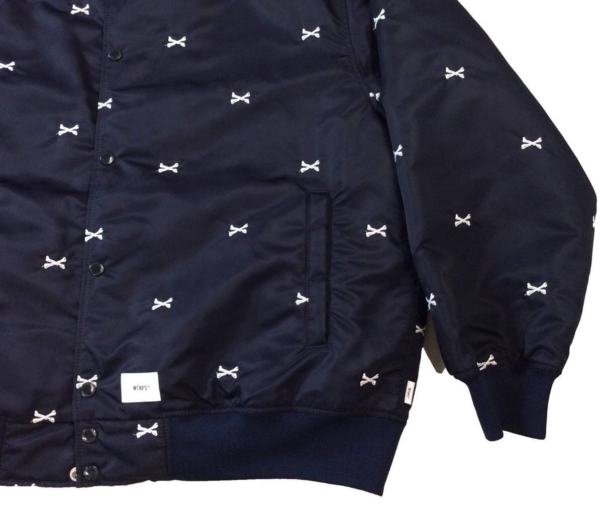 ② 美品 WTAPS ダブルタップス 22SS クロスボーン 刺繍 ナイロン チームジャケット スタジャン アワードジャケット ネイビー X 04