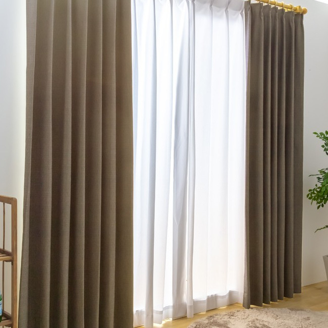 カーテン 幅300cm×丈150cm1枚 ブラウン 完全遮光 遮光1級 省エネ 遮音 遮熱 断熱 保温 日本製 形状記憶加工付 246サイズ展開