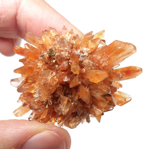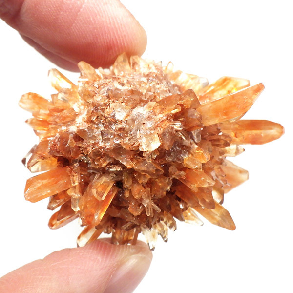 メキシコ産のクリーダイト原石です。クリーダイトは透明で、オレンジ色は鉄分によるものです。放射状にほぼ全面に結晶が成長した非常に綺麗な原石です。細かい結晶が集合しており、キラキラと美しく輝きます。