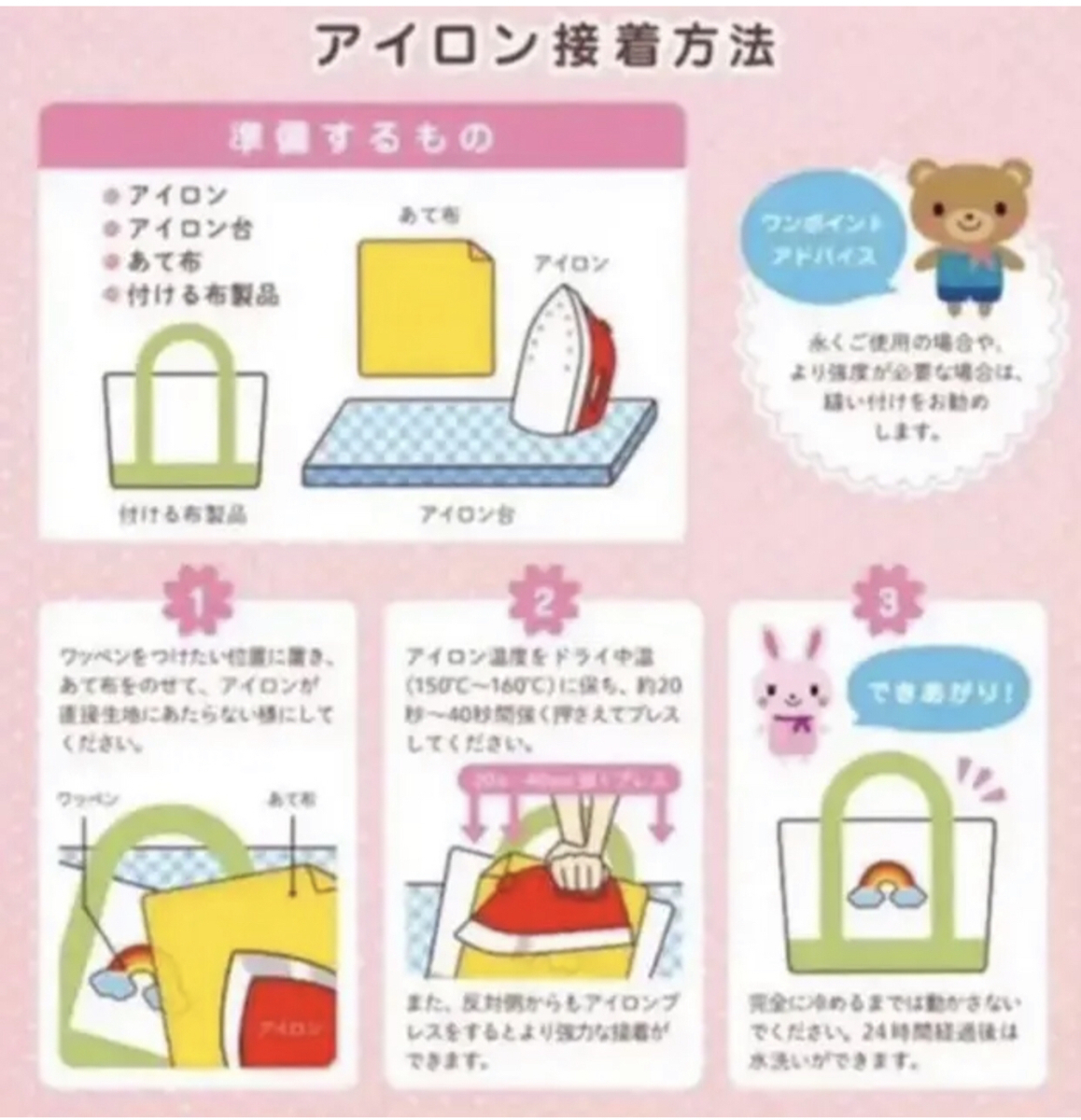アイロンで接着するだけ
