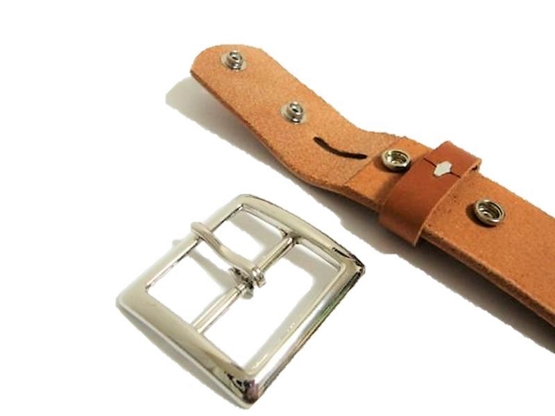 バックルはシングルピン、亜鉛素材のニッケルメッキです。
