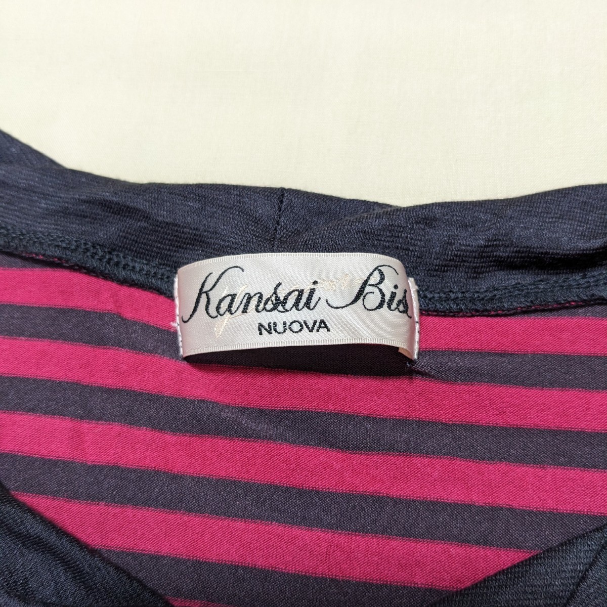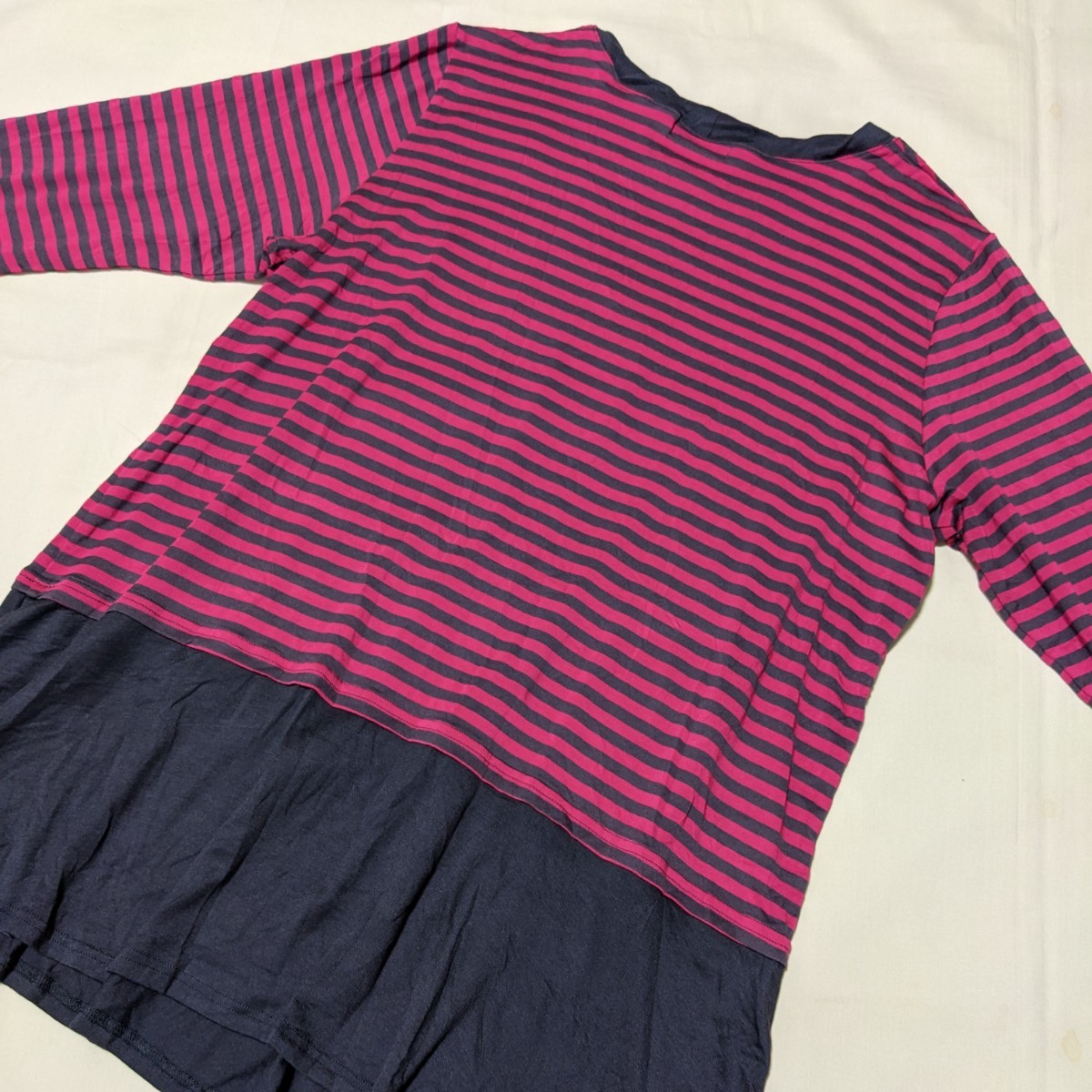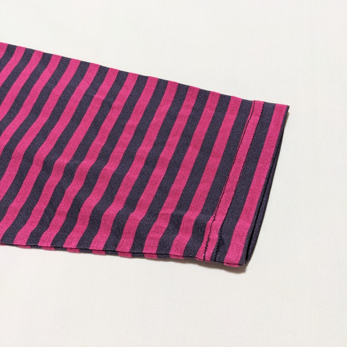濃い目のピンクとグレーのボーダー柄のカットソーです。