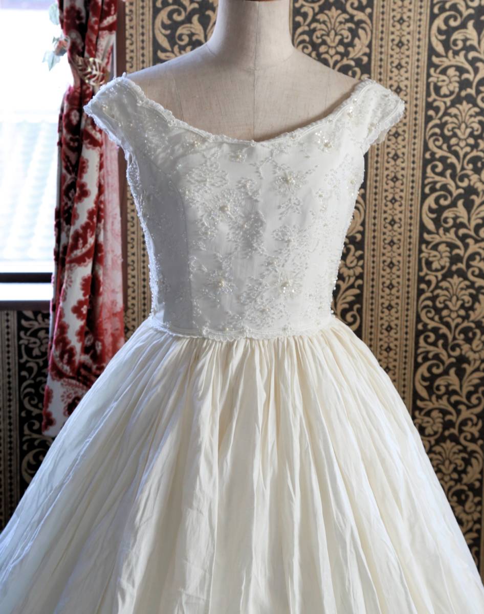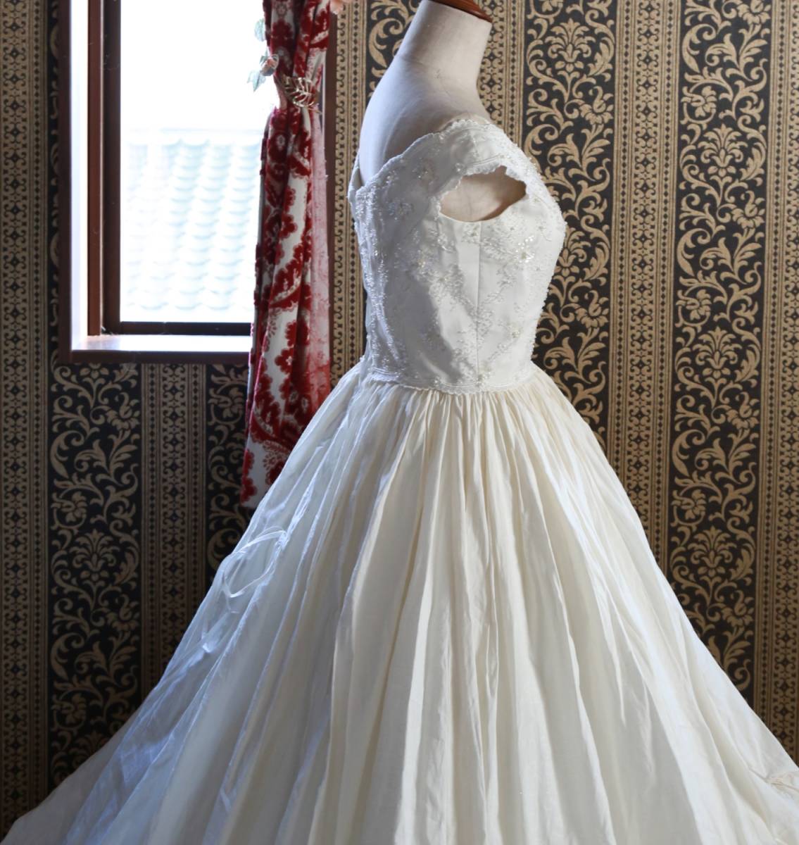 オフショルダーのデザインで、露出は控えめの清楚なデザイン