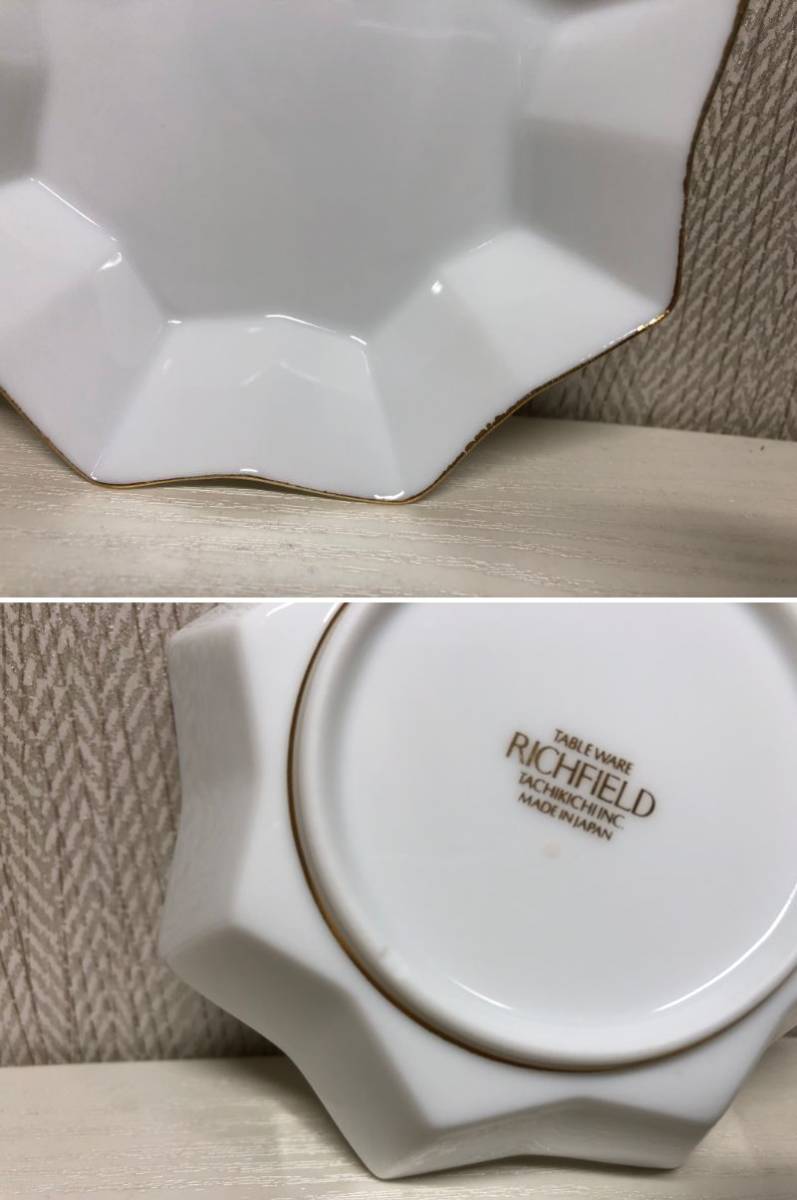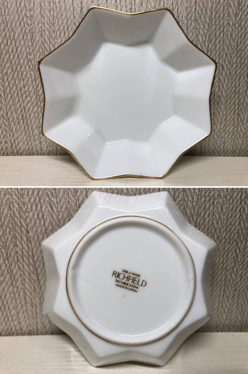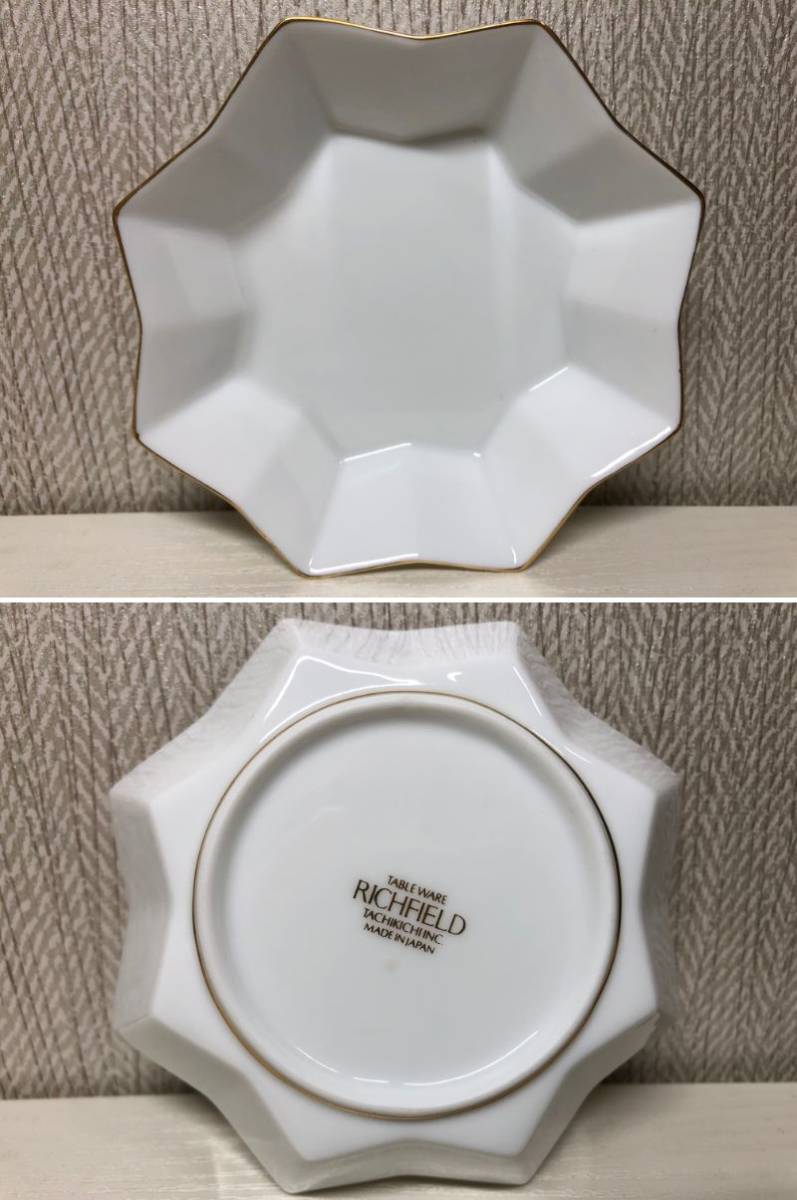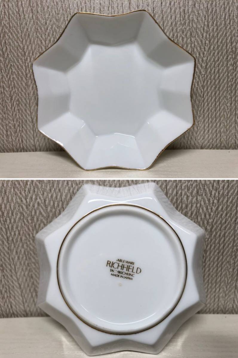 たち吉 RICH FIELD リッチ フィールド デザート プレート 小皿 5枚 金彩 白 ホワイト ゴールド 橘吉 星型 八角形 スター 金縁 取皿 小物入
