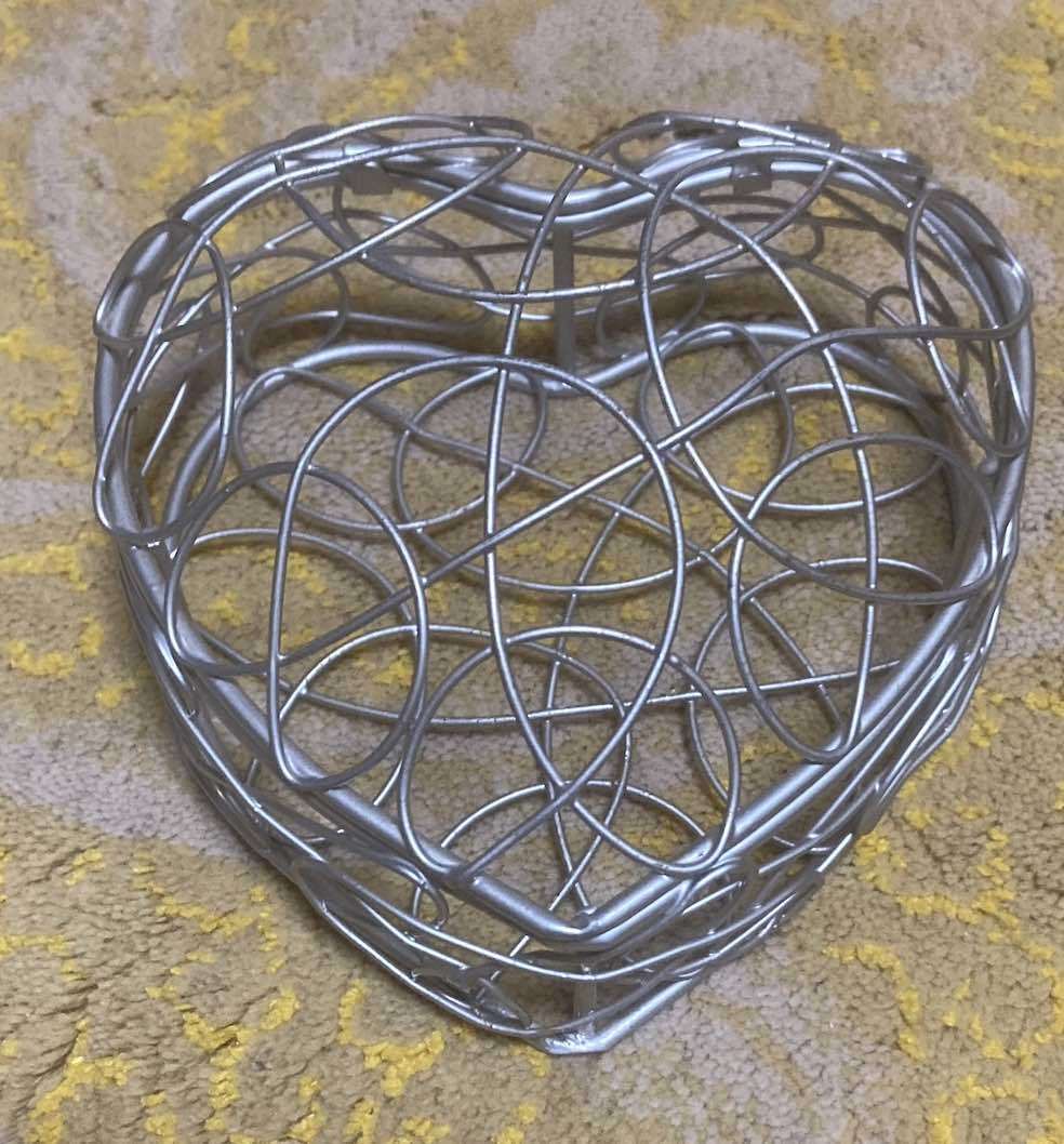 ハート型の可愛いい網の蓋の開く小物入れです。