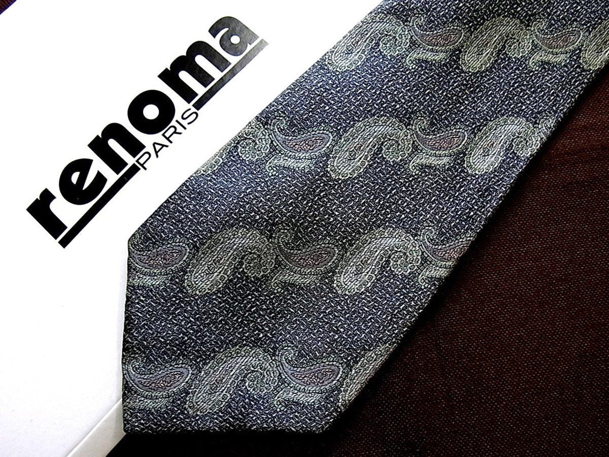 ♪22505C♪良品【刺繍 ペイズリー 装飾 柄】レノマ【renoma】ネクタイ