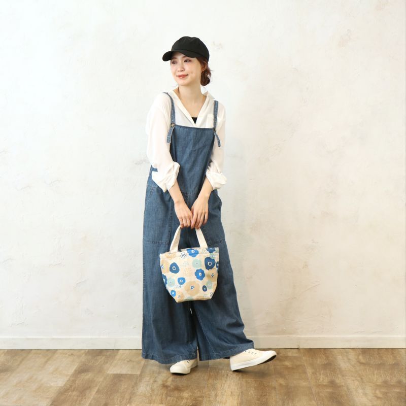 素 材 表素材/綿71%、ポリエステル29% 裏素材/アルミサイズ(約) 幅27(底16)x高さ22.5xマチ13cm 持ち手立ち上り13cm