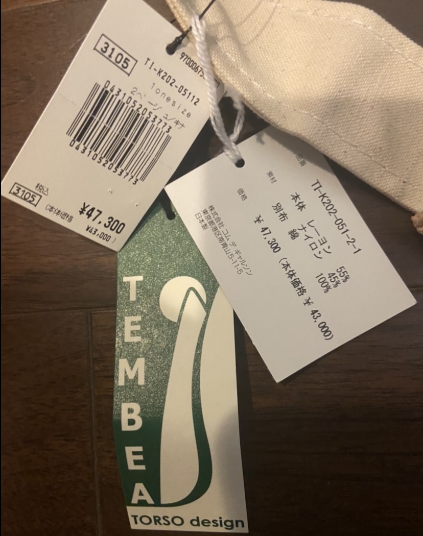 新品 ベージュ TAO TEMBEA タオ テンベア バゲット トートバッグ トリココムデギャルソン tricot COMME des GARCONS TI-K202-051 定価47300