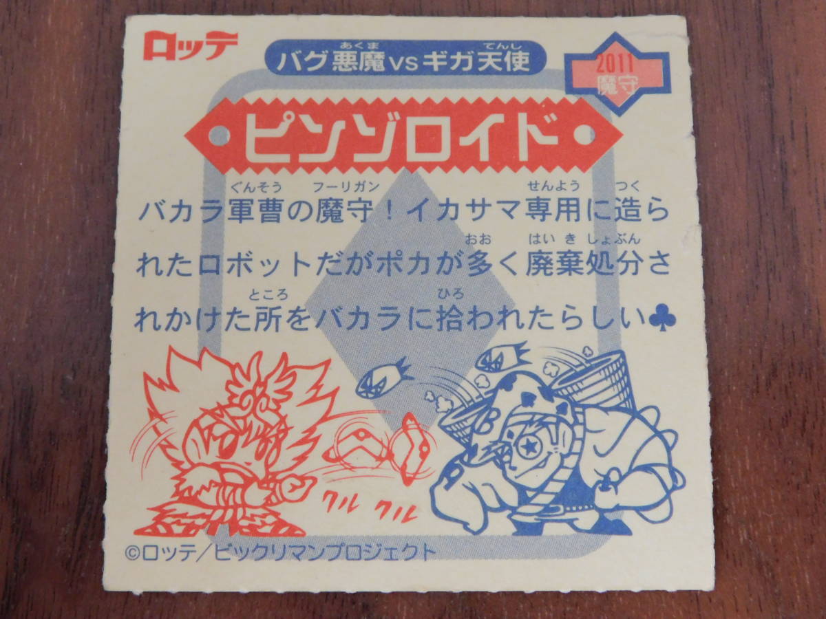 ロッテ バグ悪魔VSギガ天使 ピンゾロイド 2011 魔守 シール ビックリマン 角に破れあり